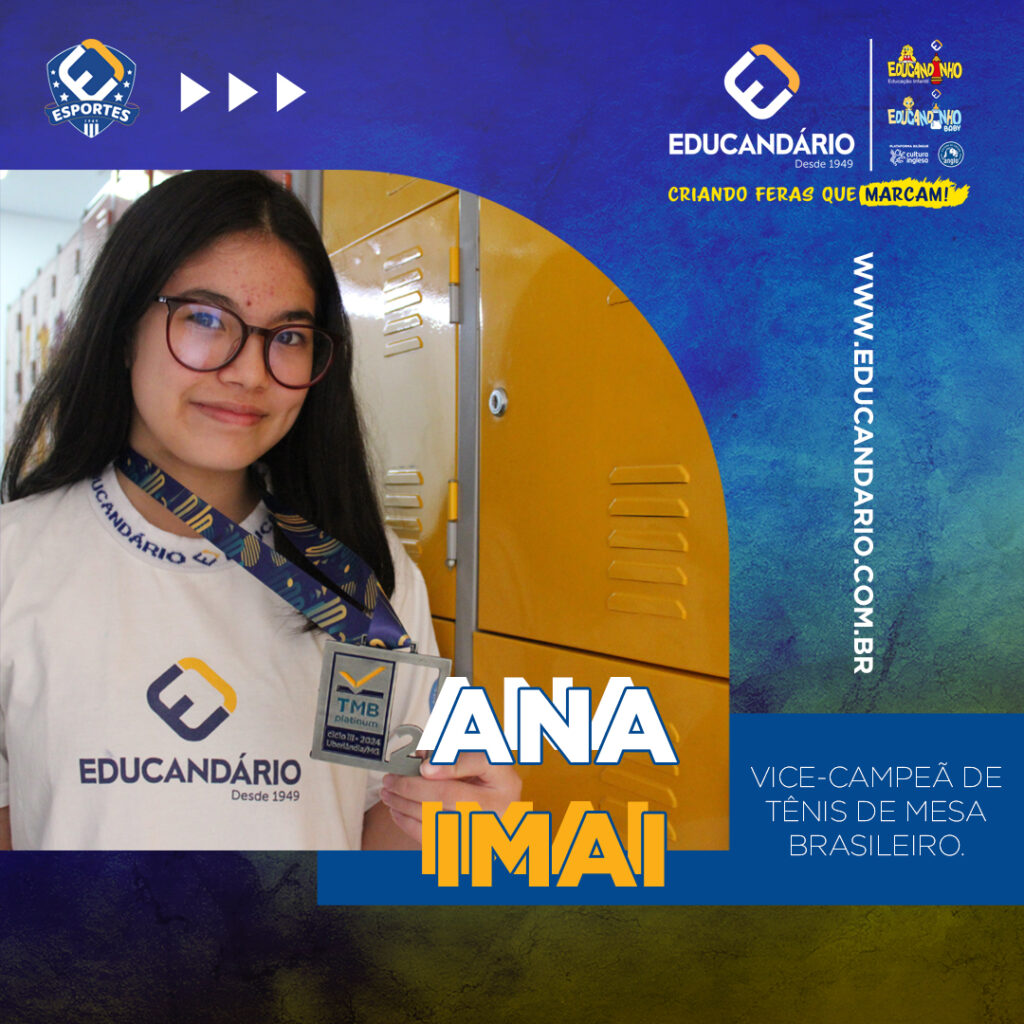 VICE-CAMPEÃ DE TÊNIS DE MESA, DUPLA MISTA Uma das atletas é aluna do Educandário-Anglo, Ana Imai do 8ºA Entre os dias 9 e 16 de setembro/2024, aconteceu na cidade de Uberlândia, Minas Gerais um dos mais disputados torneios de tênis de mesa do Brasil, o TMB Platinum (campeonato Brasileiro). A aluna do Educandário-Anglo, Ana Imai […]