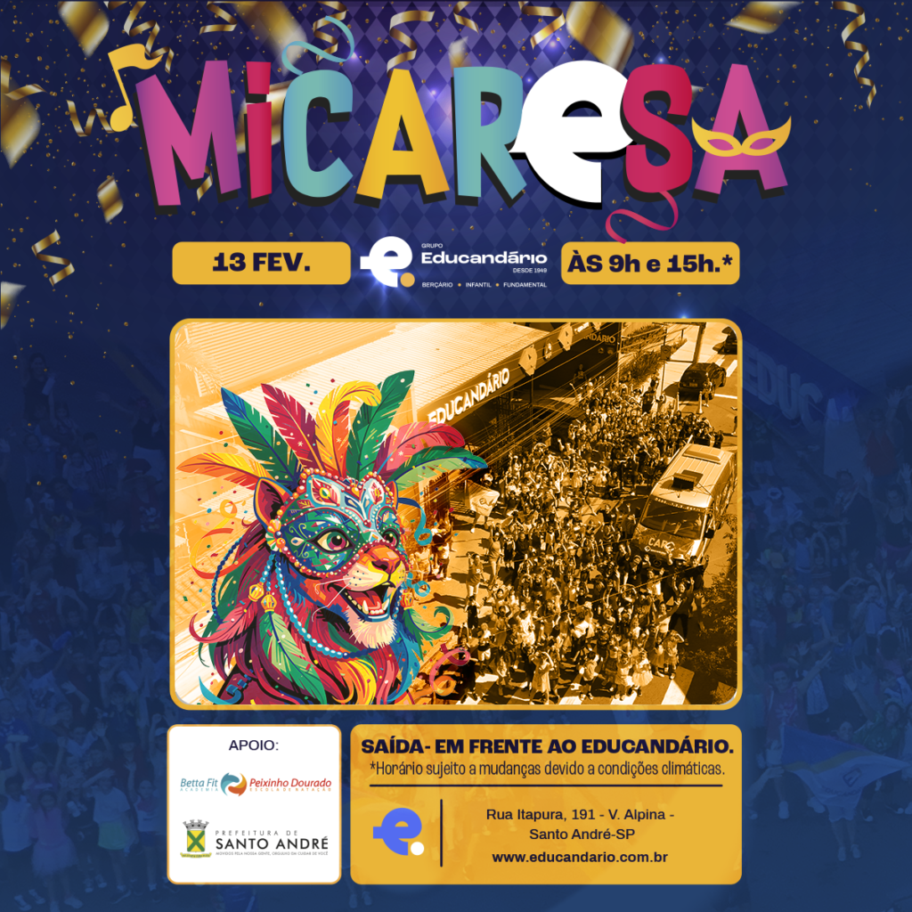 Confira as principais Fotos Confira a Letra Oficial – MICARESA 2026 Ôôô… chegou, chegou! A Micaresa chegou!Ôôô… chegou, chegou! Olha o Educandário passando, Alegria vem contagiar!É festa, é som, é carnaval, Todo mundo vem brincar!Juntos somos luz e união, Escola Farol guiando a direção! Ôôô… chegou, chegou! A Micaresa chegou!Ôôô… chegou, chegou! Educandário chegou pra […]