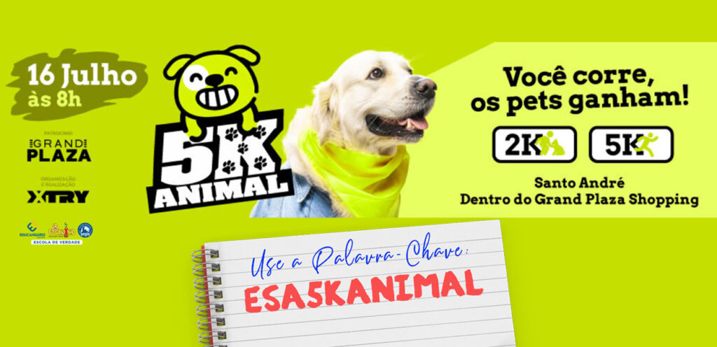 5K ANIMAL é uma corrida e caminhada divertida para você 5k Humanos, seu PET 2k Eu e meu Pet, e toda a família. E nesse ano o Educandário-Anglo entra nessa parceria!
