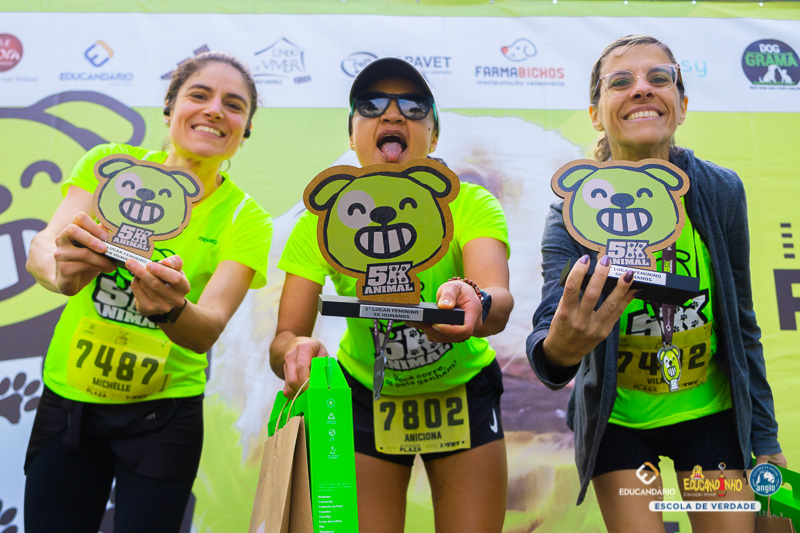 Todos os participantes dos 5k Humanos receberão camiseta alusiva ao evento esportivo e medalha aos que concluírem a prova. Todos os participantes dos 2k Eu e meu Pet receberão camiseta alusiva ao evento, uma bandana para seu Pet e medalha aos que concluírem a prova.