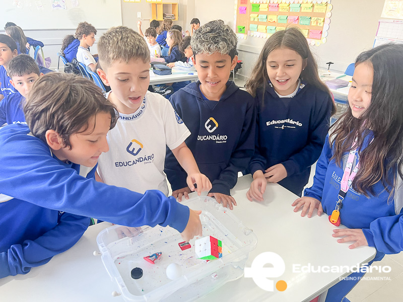 Com esse experimento prático, os alunos puderam compreender melhor conceitos importantes como massa e densidade, percebendo que nem sempre o tamanho do objeto determina se ele vai flutuar ou afundar. Foi um momento de investigação, curiosidade e muito aprendizado científico em sala de aula.