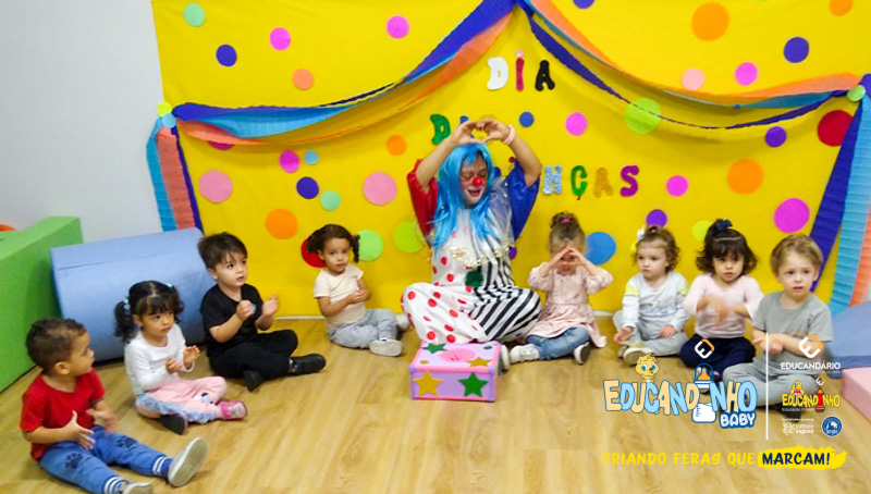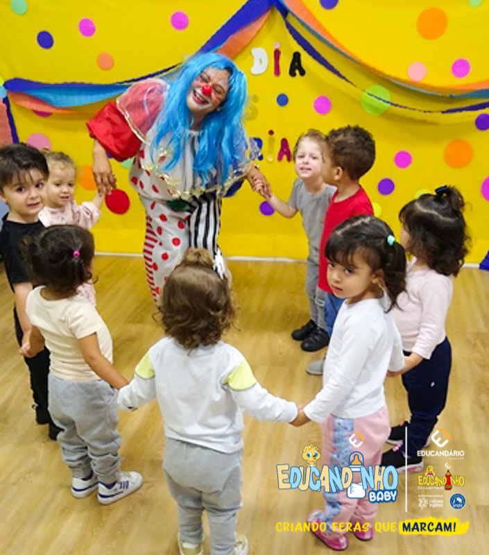 Na Semana das Crianças, o Educandinho Baby preparou momentos de pura diversão e alegria! Hoje, recebemos a visita especial do Palhaço Paçoca, que encheu nosso berçário de sorrisos e gargalhadas. Foi um dia mágico, cheio de brincadeiras e diversão, tornando o dia dos nossos pequenos ainda mais especial. Estamos felizes em proporcionar momentos inesquecíveis para nossas crianças!