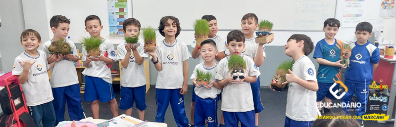 Nossos pequenos exploradores do 1º ano mergulharam no mundo das plantas! Eles aprenderam sobre o desenvolvimento das plantas de uma maneira superdivertida: fizeram bonecos de alpiste e