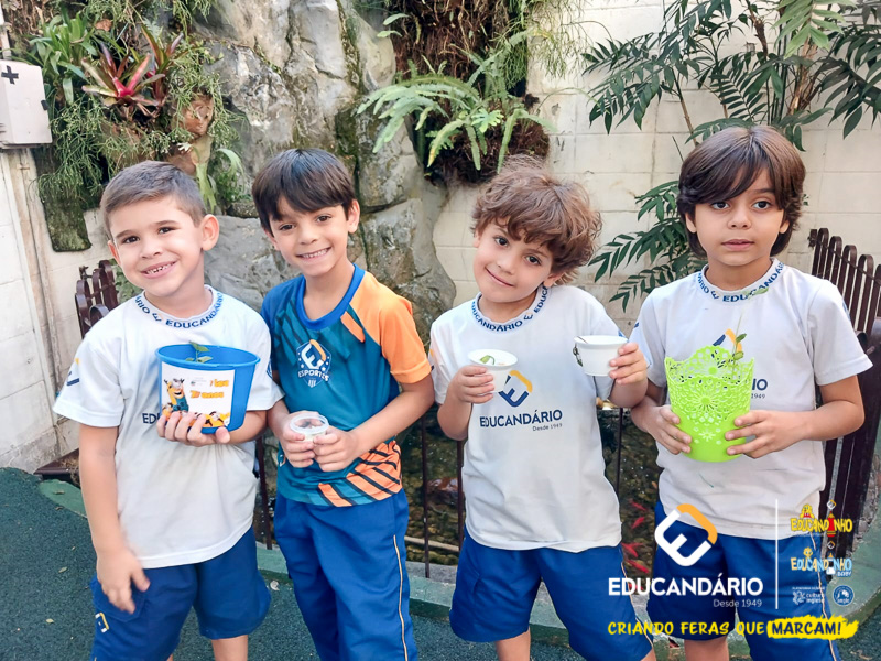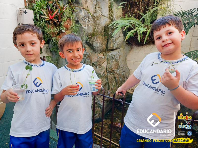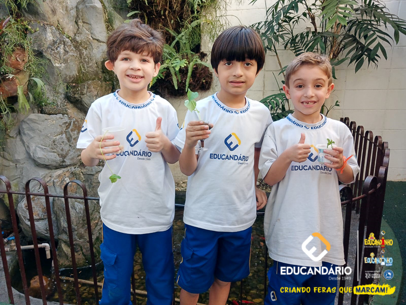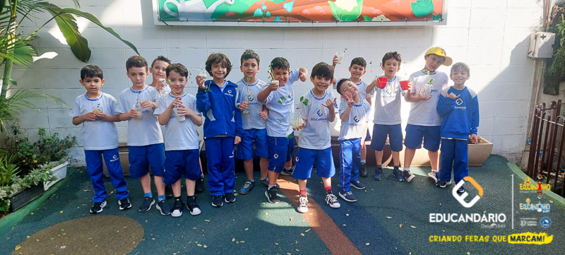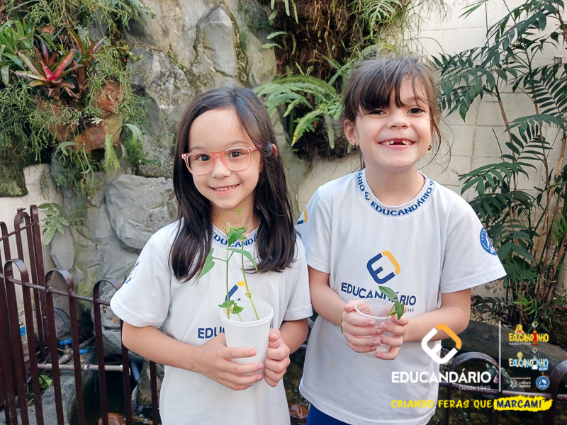 E não parou por aí! Também plantaram feijões e observaram de pertinho todo o processo de desenvolvimento dessas plantinhas.