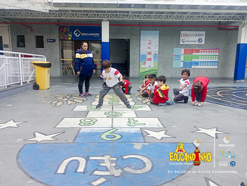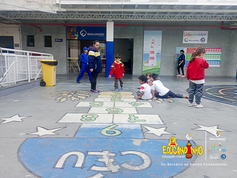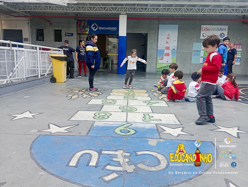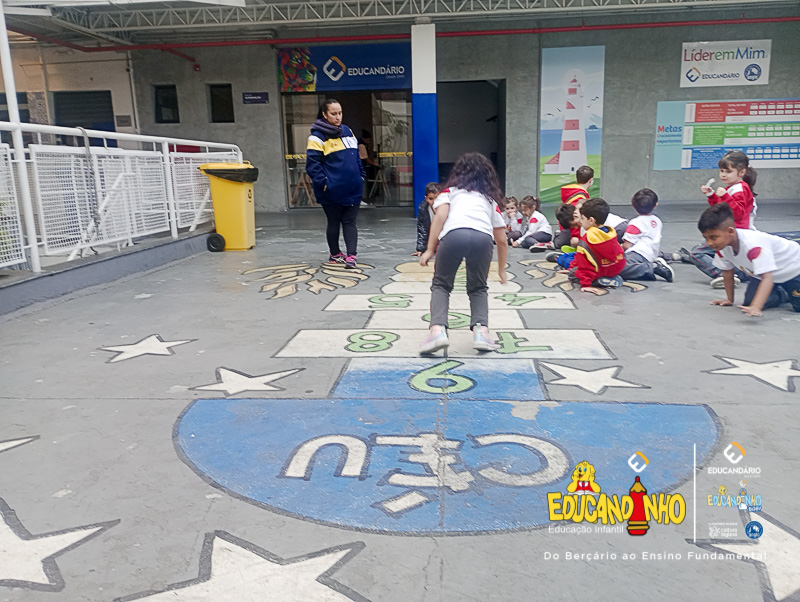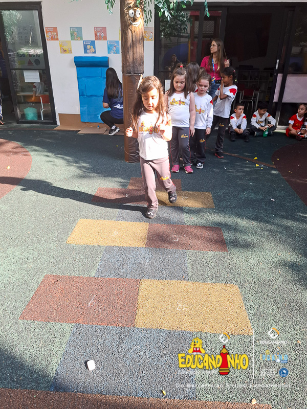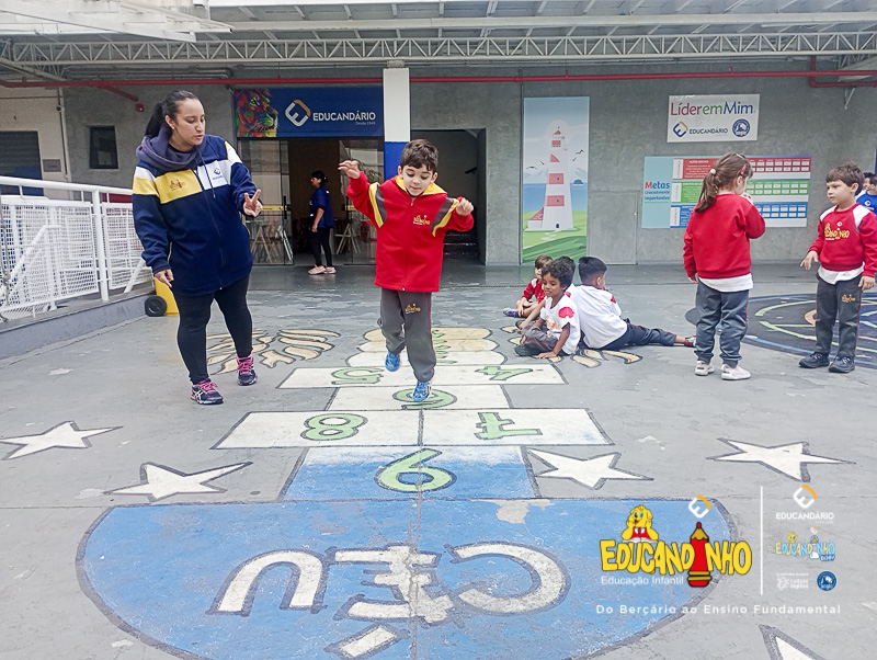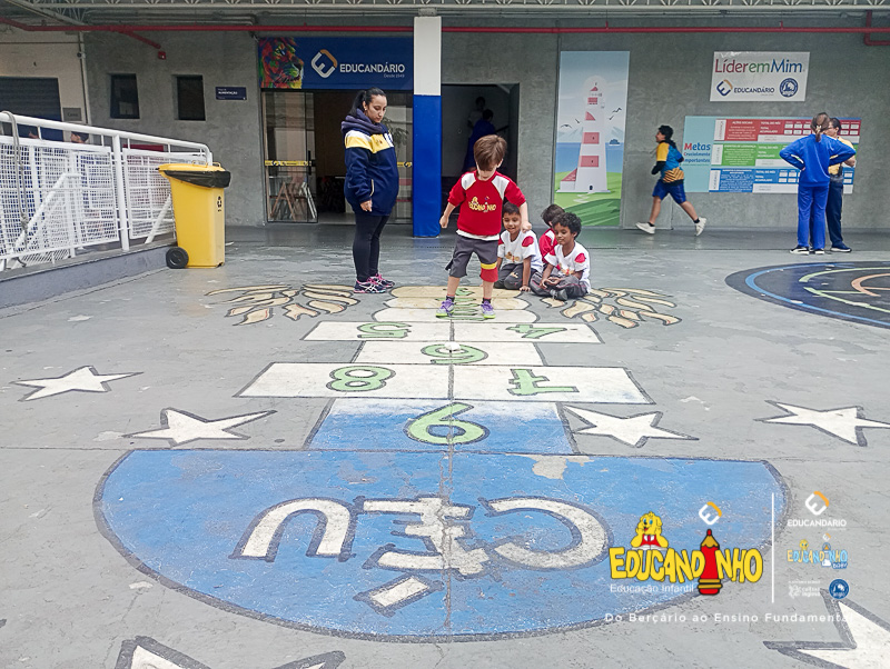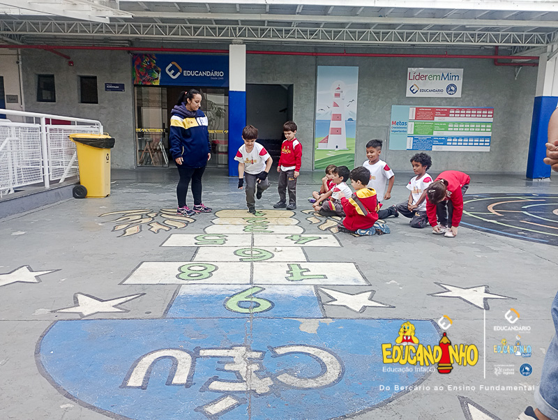 A amarelinha é uma brincadeira muito divertida! As crianças pulam com um pé só e depois com os dois, seguindo os números desenhados no chão. Além de se divertirem, as crianças aprendem a contar, equilibrar o corpo e trabalhar a coordenação motora. É uma forma alegre de brincar e aprender ao mesmo tempo!