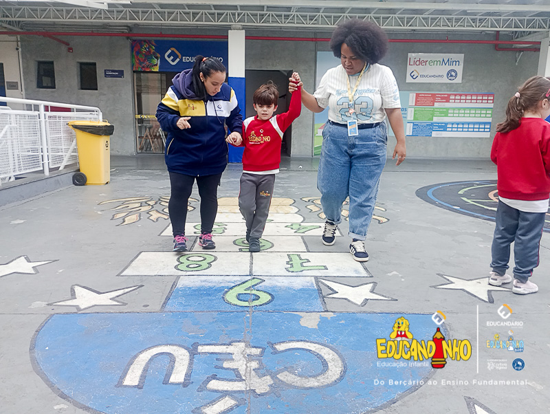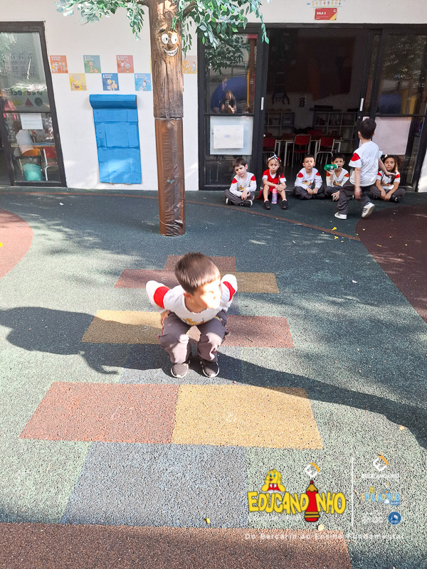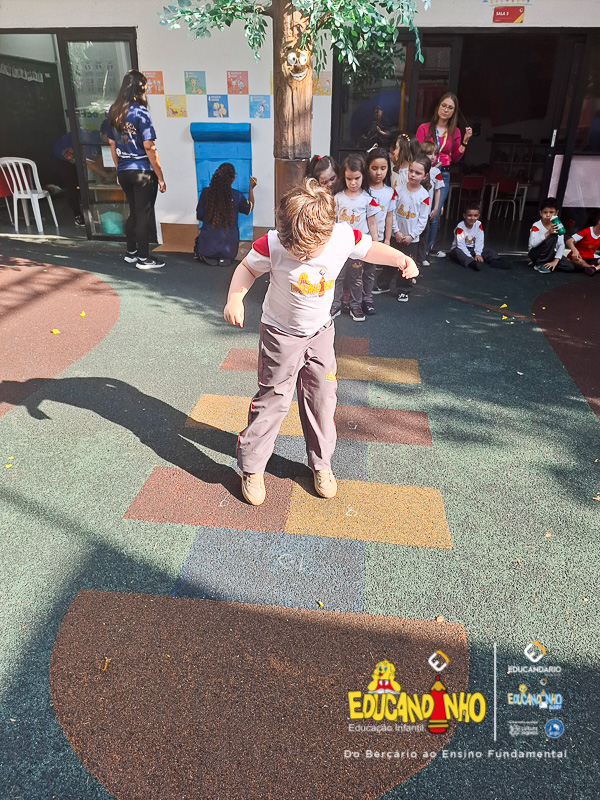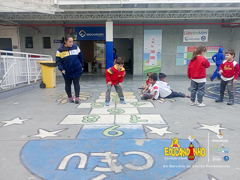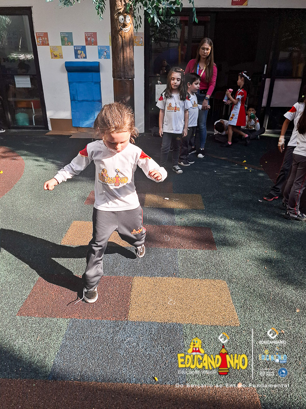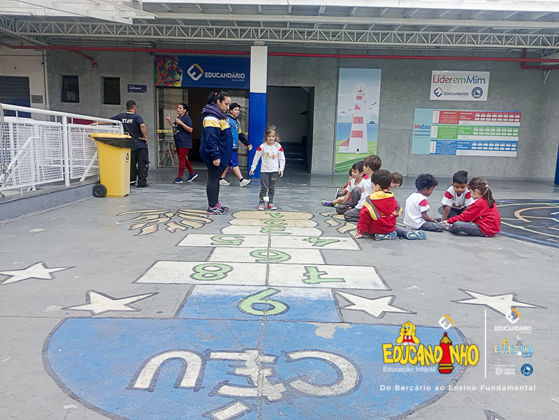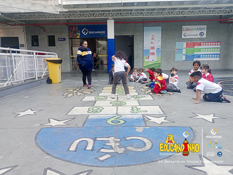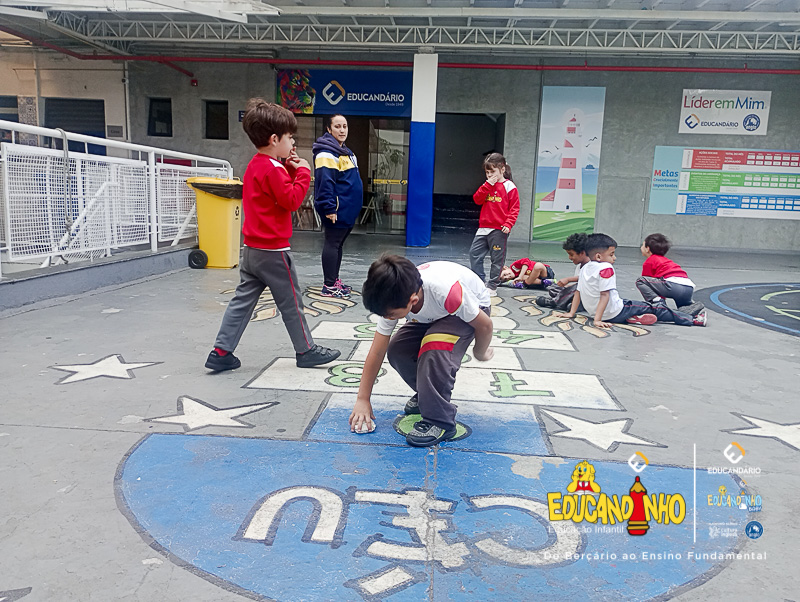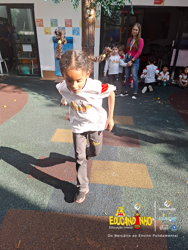 A amarelinha é uma brincadeira muito divertida! As crianças pulam com um pé só e depois com os dois, seguindo os números desenhados no chão. Além de se divertirem, as crianças aprendem a contar, equilibrar o corpo e trabalhar a coordenação motora. É uma forma alegre de brincar e aprender ao mesmo tempo!