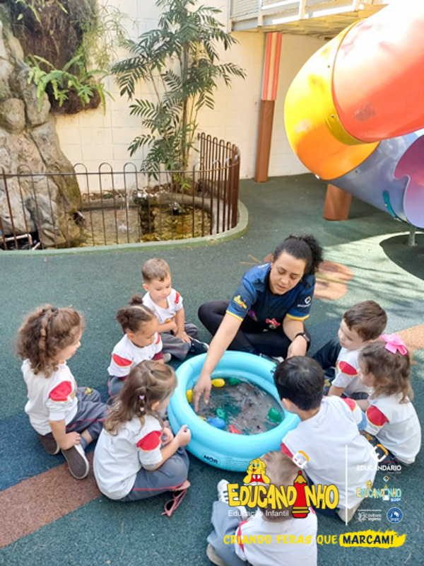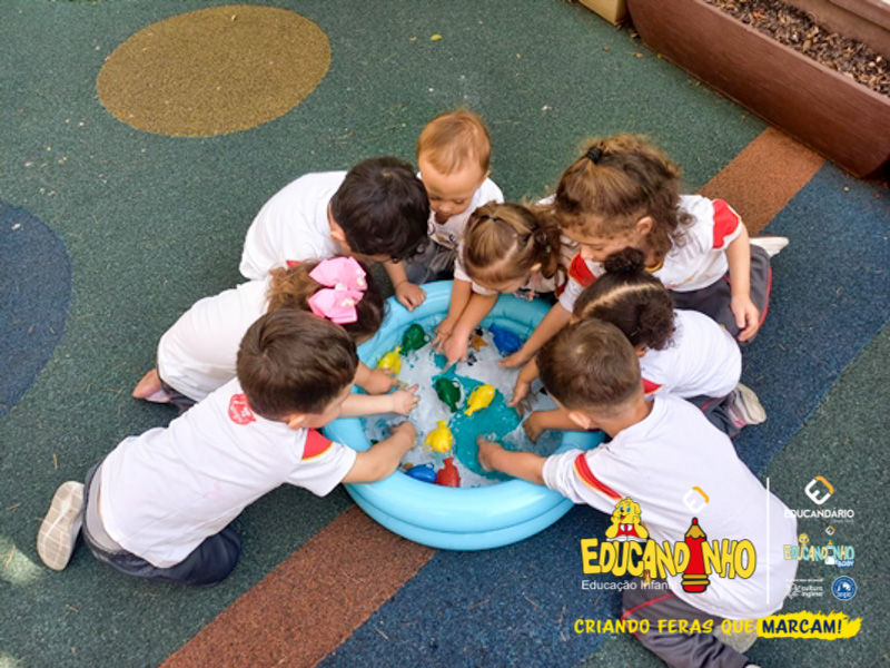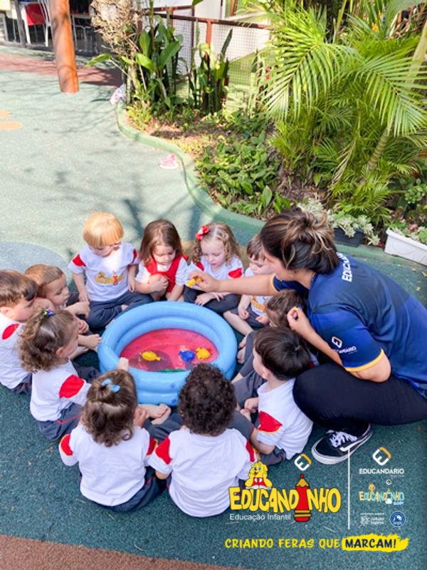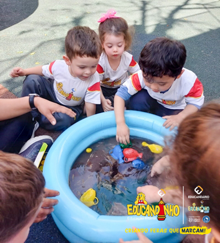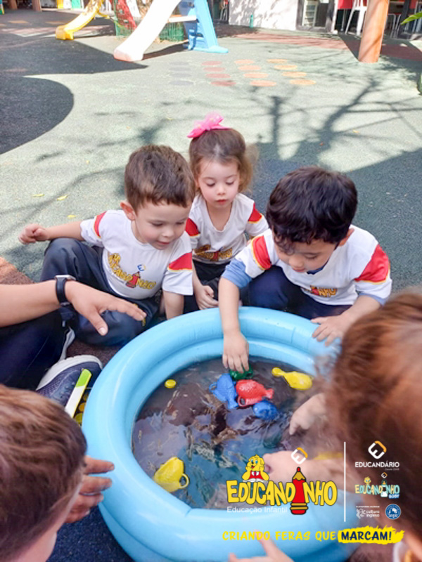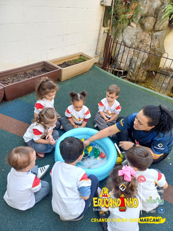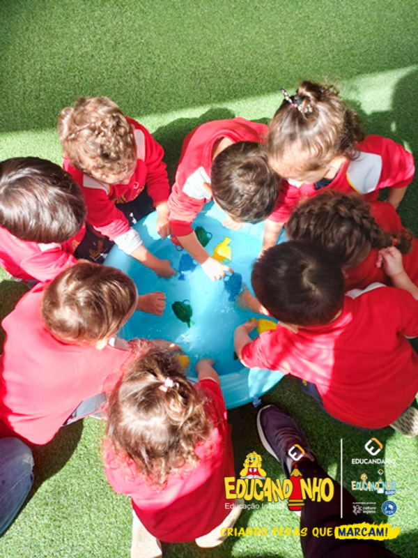 Nossos alunos aprenderam a cantar e dançar a música, ao mesmo tempo em que exploravam as cores e refletiam de forma lúdica sobre a importância de não poluir nossos mares para preservar a vida marinha.