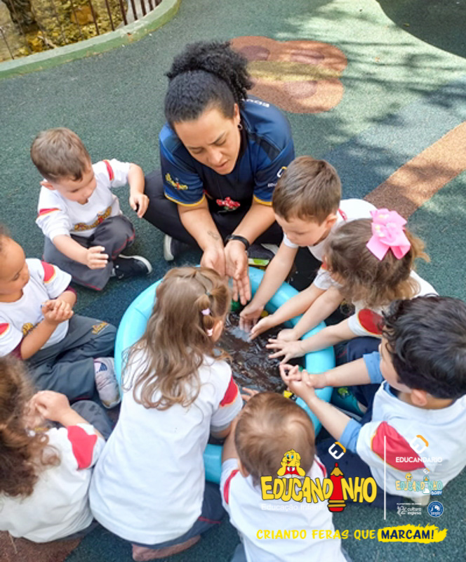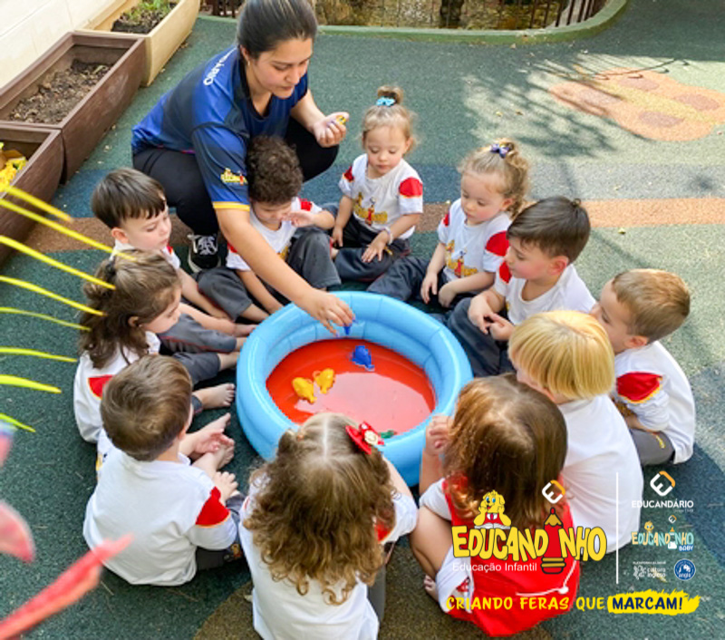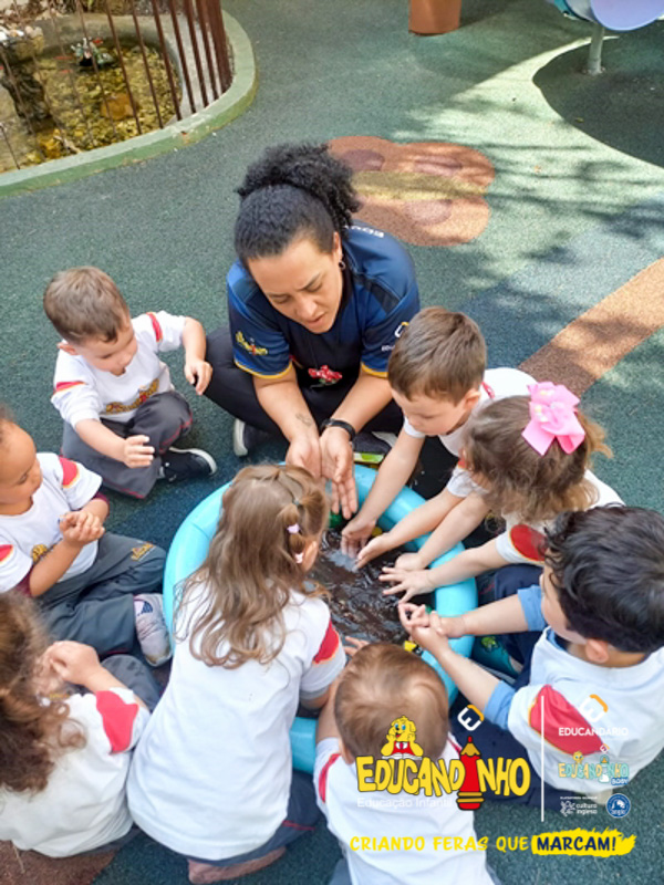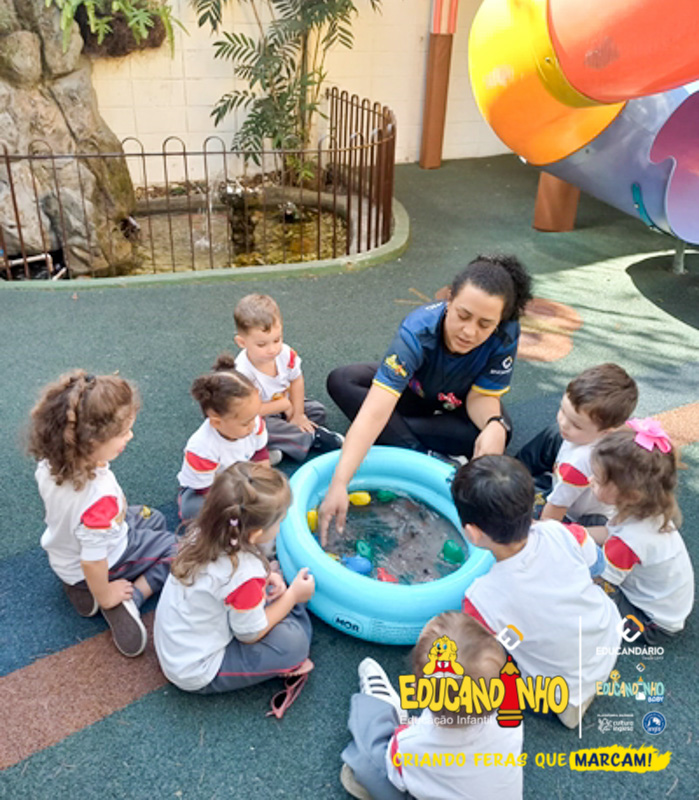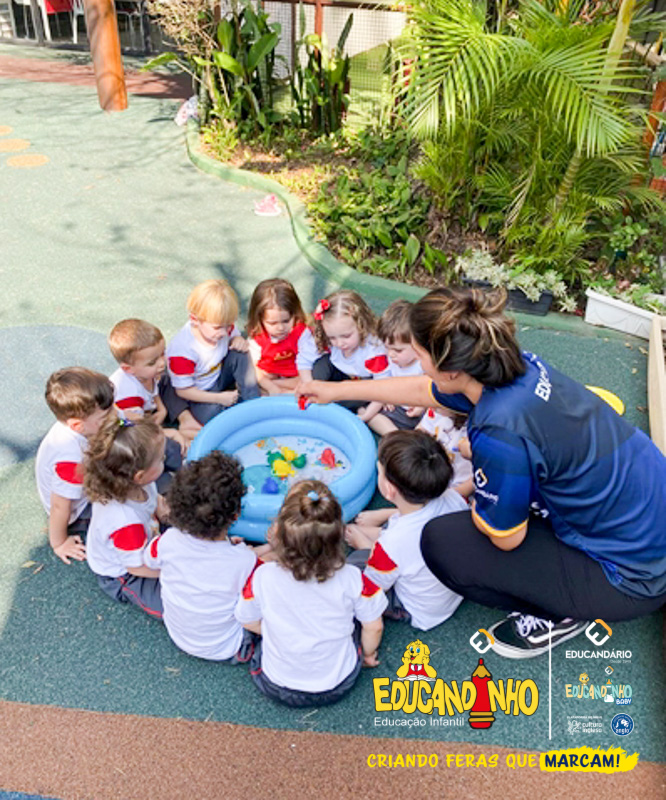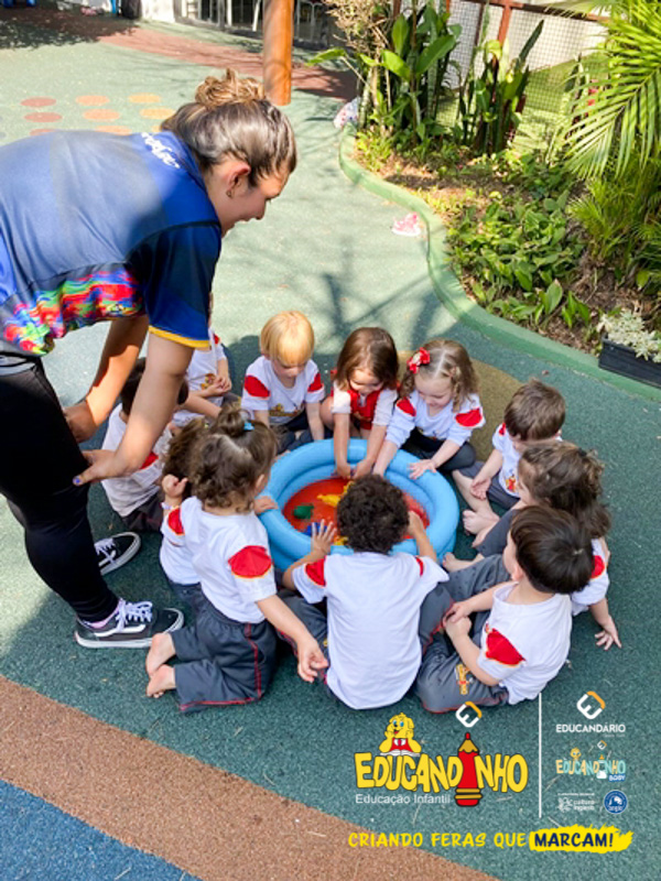 Nossos alunos aprenderam a cantar e dançar a música, ao mesmo tempo em que exploravam as cores e refletiam de forma lúdica sobre a importância de não poluir nossos mares para preservar a vida marinha.