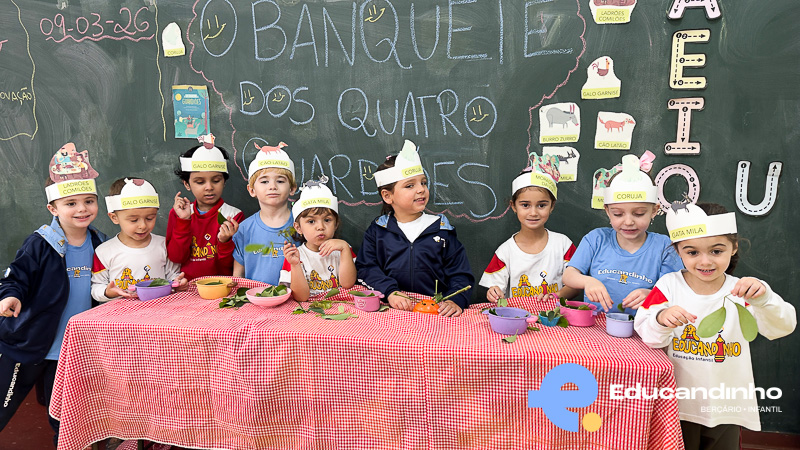 ​Para celebrar o encerramento deste ciclo, participaram de um banquete especial de faz de conta. A sala de aula se transformou em um cenário de histórias, onde as crianças deram vida aos próprios personagens!