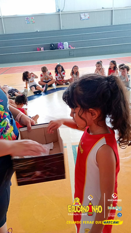 Os alunos do Infantil 4, participaram da brincadeira corre cutia dos nomes, uma brincadeira que mistura agilidade, interação entre as crianças, atenção e memorização. Além de manter viva uma parte importante da cultura infantil brasileira, é muito divertida e cheia de risadas.