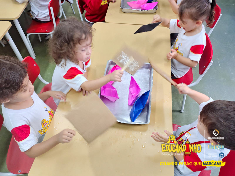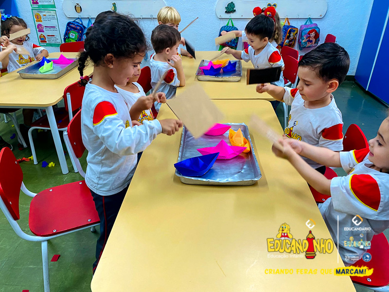 O Infantil 2 está descobrindo a magia de um sopro que move o mundo, com leques, papel picado e barquinhos na água. Uma experiência cheia de diversão e aprendizado!