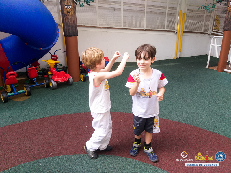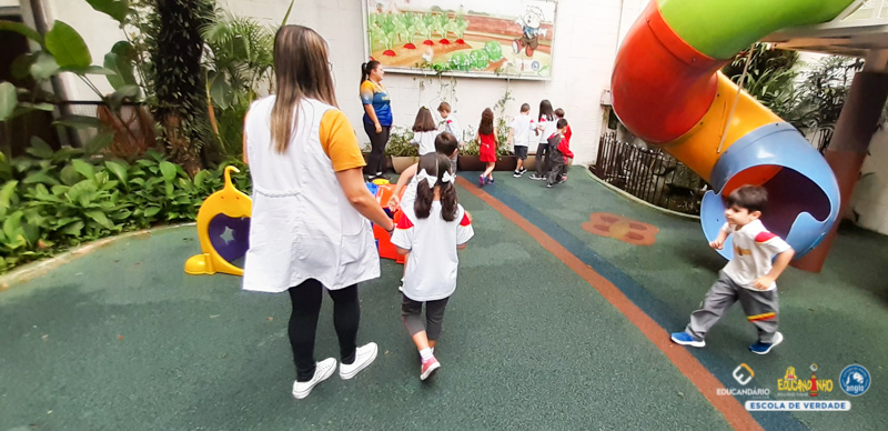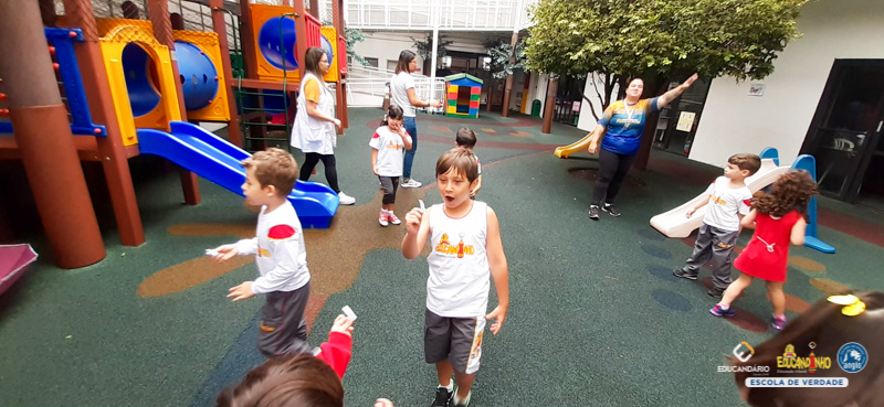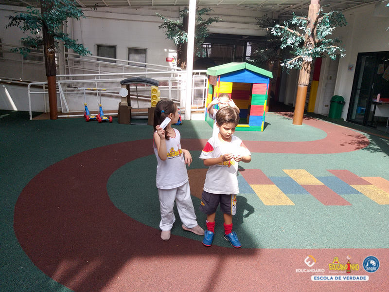 É divertido brincar de caça ao tesouro, ainda mais quando o tesouro são palavras escritas com RR. O Infantil 4 brincou de encontrar no parque, palavras que apresentam o RR e desvendaram o mistério da letra R e seus sons.