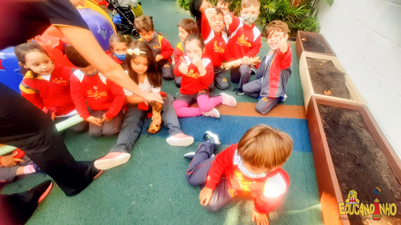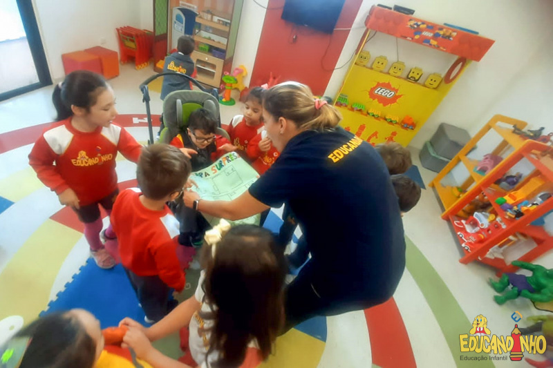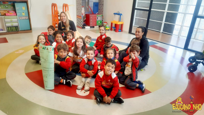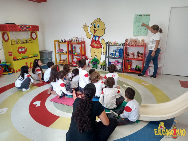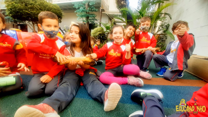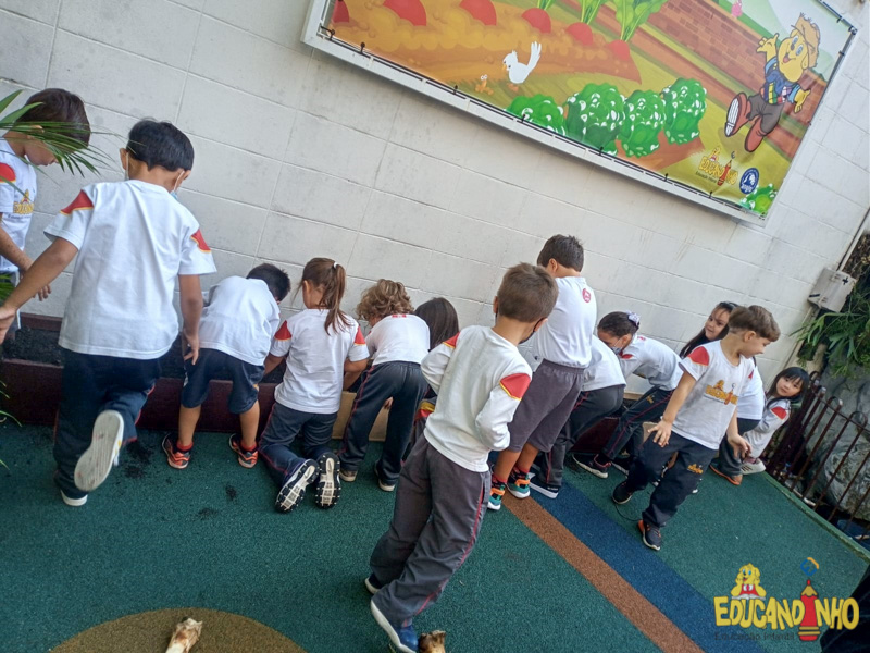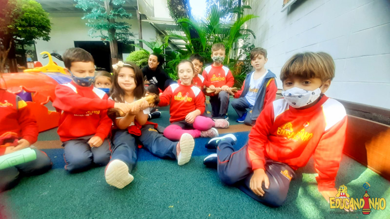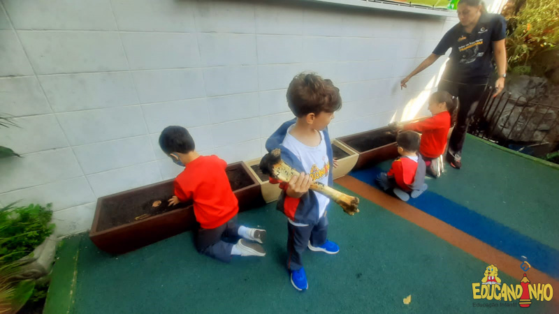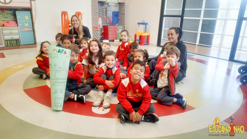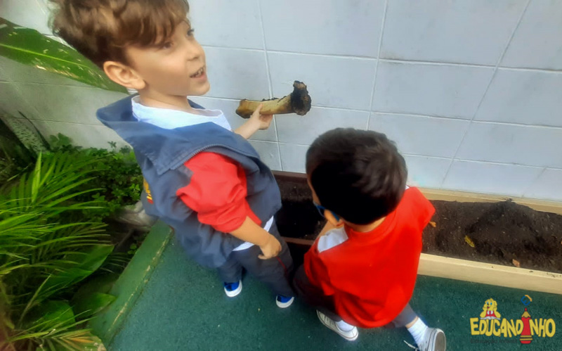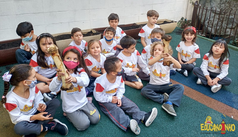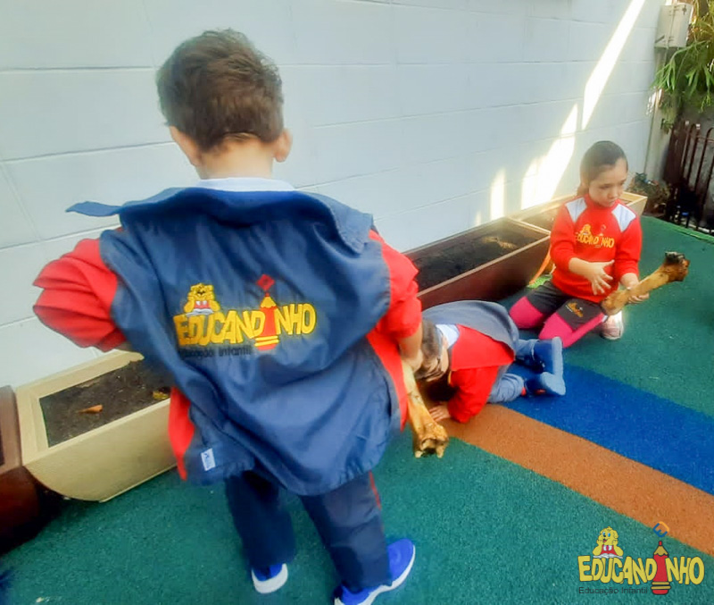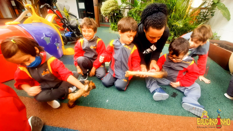 Depois de conhecer a história “A Incrível Descoberta“, a nossa turma embarcou em uma grande caça preparada pelo Eduzinho. Ao chegarem na sala, encontraram uma mensagem do nosso mascote dizendo que teriam que encontrar uma surpresa. E para isto, seria necessário seguir o mapa que estava escondido. Depois que desvendarem a charada, encontraram o mapa na brinquedoteca, e foi assim que a grande brincadeira começou. Seguiram o mapa até a parte indicada e depois uma escavação. Nossos pequenos paleontólogos encontraram dois grandes ossos. Agora teremos que descobrir de que dinossauro pertencem esses ossos, você arrisca um palpite?