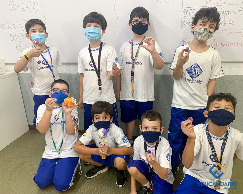 A Cultura Maker apresenta a ideia de que qualquer pessoa consegue construir, consertar ou criar seus próprios objetos. Já na nossa aula proposta com a Caixa Maker, os alunos do 3º ano soltaram a imaginação e fizeram um protótipo do planeta Terra. (Colaboração: Prô Tati).