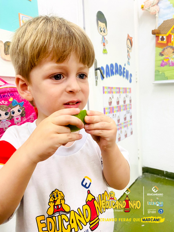 Nossos pequenos do Infantil 1 soltaram a criatividade e se divertiram explorando o azedinho do limão! Entre caretas e muitas risadas, essa experiência fortaleceu a autoestima, o autoconhecimento e criou momentos especiais de sinergia.