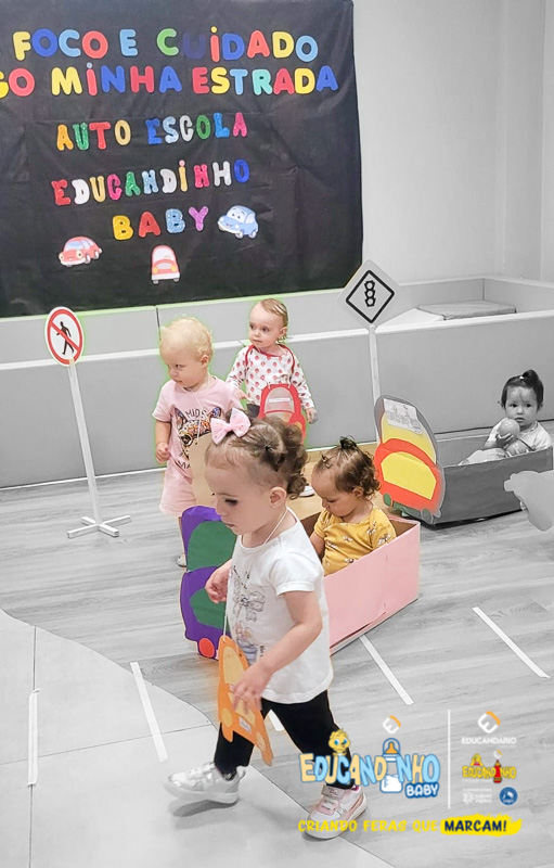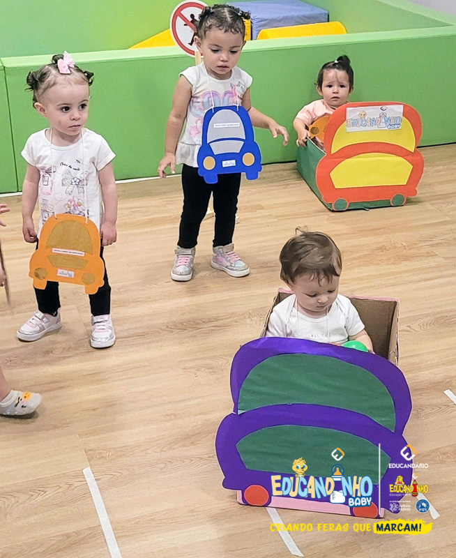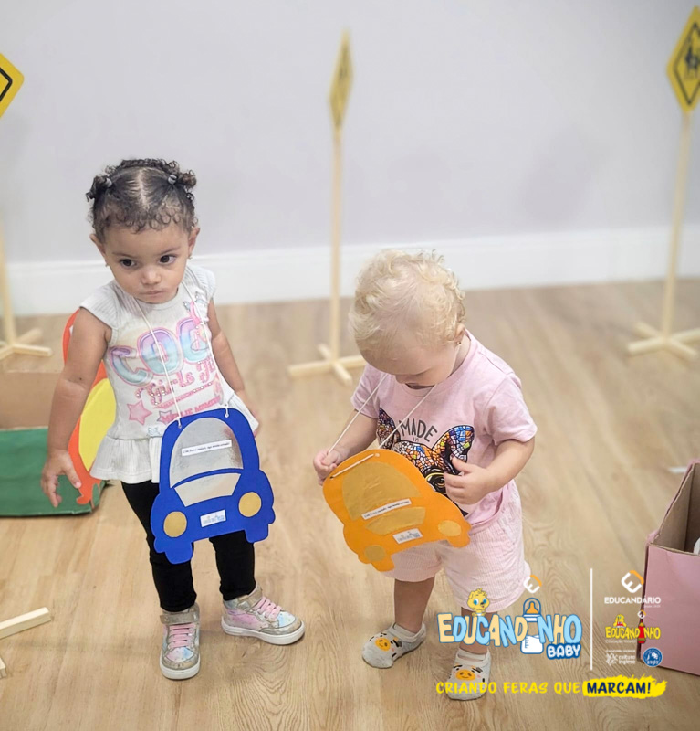 Os pequenos pilotos ligaram seus carrinhos imaginários e saíram dirigindo como se estivessem na Fórmula 1 — só que com foco, cuidado… e muita fofura!