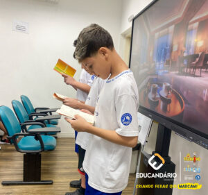 Os alunos do 8º ano proporcionaram um momento emocionante durante o Sarau Literário, onde apresentaram poemas do livro “Rios da Alegria”, escrito pela renomada autora