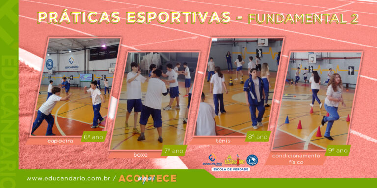 Veja as emocionantes jornadas esportivas de nossos alunos do fundamental 2 (6º ao 9º ano) durante o 2º trimestre! 6º ano – Capoeira Os alunos do 6º ano, estão aprendendo a capoeira, abordagem da história, conhecendo instrumentos como: pandeiro, berimbau e atabaque. Aprendendo movimentos como: ginga, benção, martelo, cocorinha entre