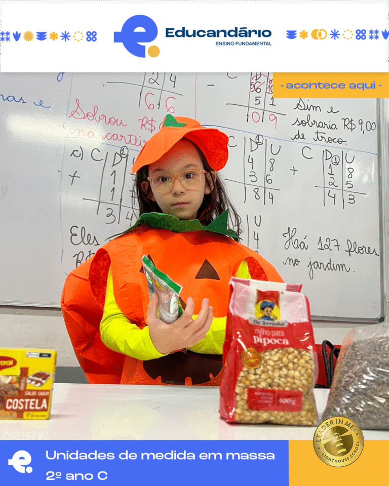 Os alunos do 2º ano C estão aprendendo sobre as unidades de medida de massa e capacidade nas aulas de Matemática. Na última aula, exploraram as medidas padronizadas de massa e participaram da experiência “Quanto pesa?”, utilizando alguns alimentos disponibilizados pela professora. Foi um momento muito interessante, no qual puderam