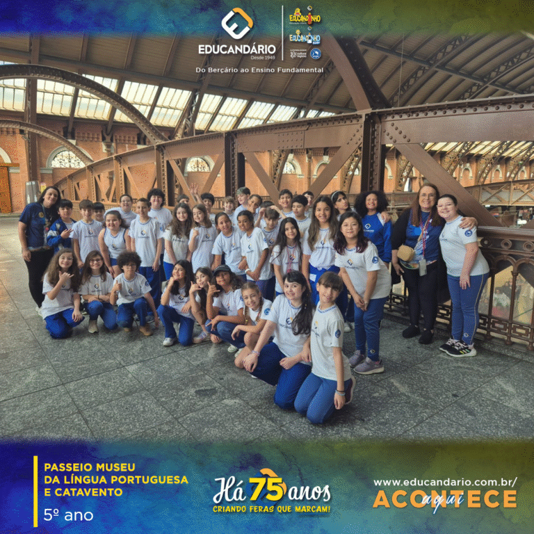 Nesta quinta-feira, 16 de outubro, os alunos do 5º ano (A e B) participaram de uma saída pedagógica enriquecedora em São Paulo, visitando dois importantes espaços culturais e educacionais: o Museu da Língua Portuguesa e o Museu Catavento. No Museu da Língua Portuguesa, localizado na Estação da Luz, os estudantes exploraram