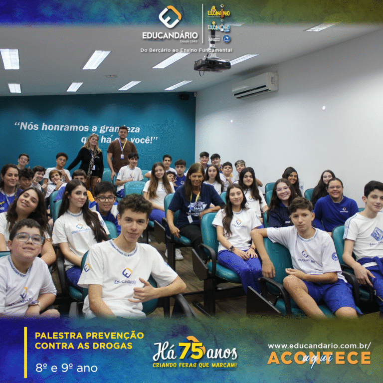 Alunos do 8º e 9º ano participaram de uma palestra essencial sobre prevenção ao uso de drogas, conduzida pela psicóloga Celina e pelo orientador José Luis. Durante a conversa, nossos estudantes refletiram sobre os riscos do uso de substâncias e a importância de tomar decisões conscientes, alinhando a mensagem ao