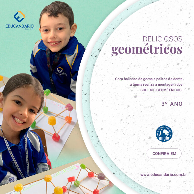 Entendendo a geometria de maneira fácil e gostosa, o 3º ano montou com palitos de dente e balinhas de gomas os Sólidos Geométricos. Acreditamos que a montagem não durou muito tempo…. rs.