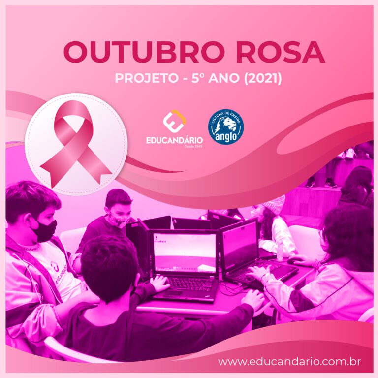 Os alunos dos 5º anos, sob a orientação das professoras Ingrid e Luciene, lançam para os demais alunos do Educandário a Campanha Outubro Rosa. As professoras prepararam uma aula como disparador contextualizando a história da Campanha e a necessidade de conscientizar as pessoas que quanto antes o câncer de mama