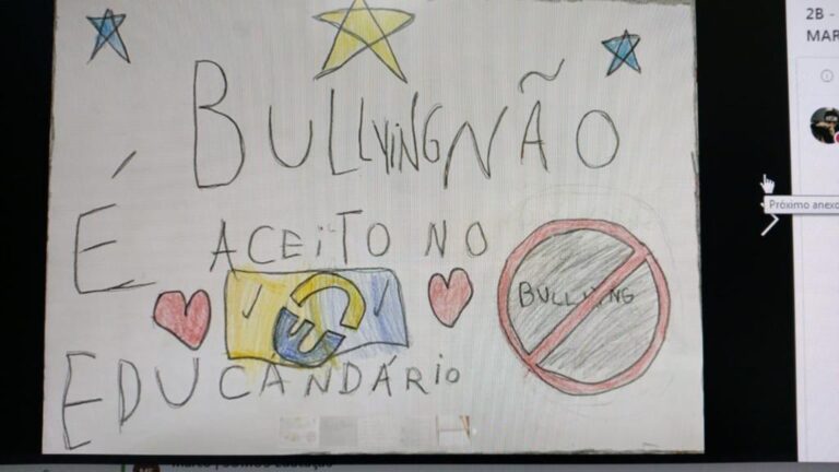O cartaz do segundo ano exibe uma mensagem muito importante a todos: Nossa escola ensina o respeito. #OEnsinoNaoPara #BullingNao