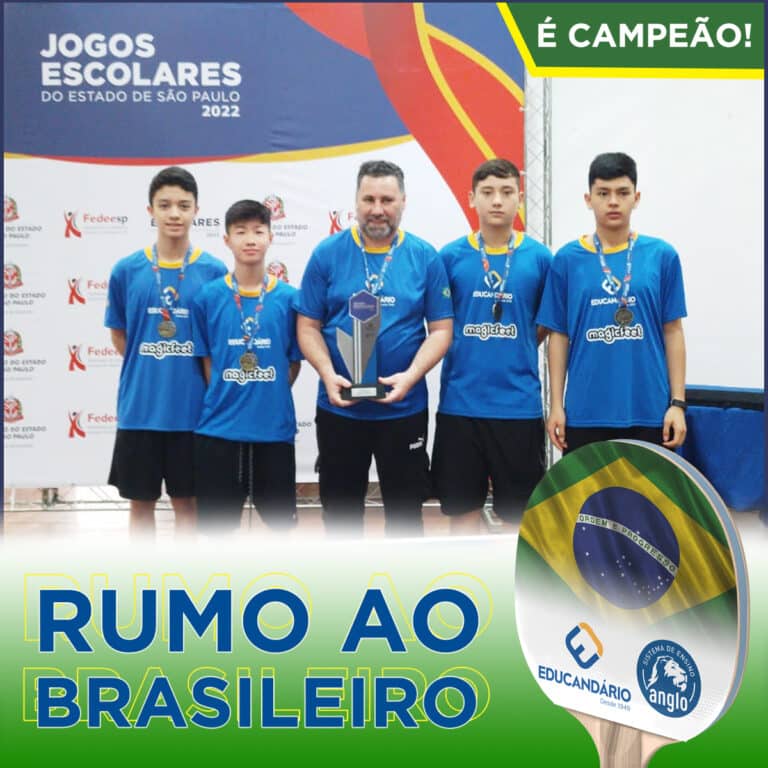 O Educandário-Anglo sagrou-se campeão estadual escolar de Tênis de Mesa Masculino no JESSP/2022. Vencendo o município de Taubaté por 3×0 na final da etapa 2 e no cruzamento com as escolas do estado venceu o município de Mirassol, também pelo o resultado de 3×0, garantindo então, a vaga para disputar