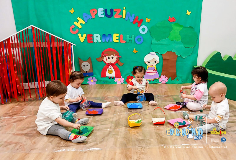 Logo depois, descobriram as frutinhas da cestinha da Chapeuzinho e mergulharam em uma atividade cheia de significado: criaram cestinhas sustentáveis pintando garrafas PET, unindo imaginação, cuidado com o planeta e muito aprendizado!