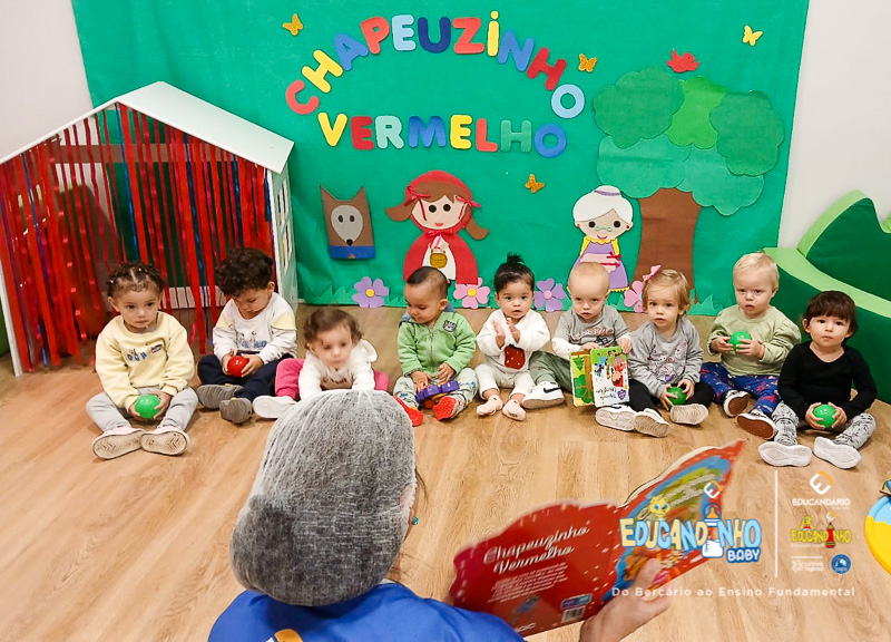 As crianças ficaram com os olhinhos brilhando, atentas à contação de história.