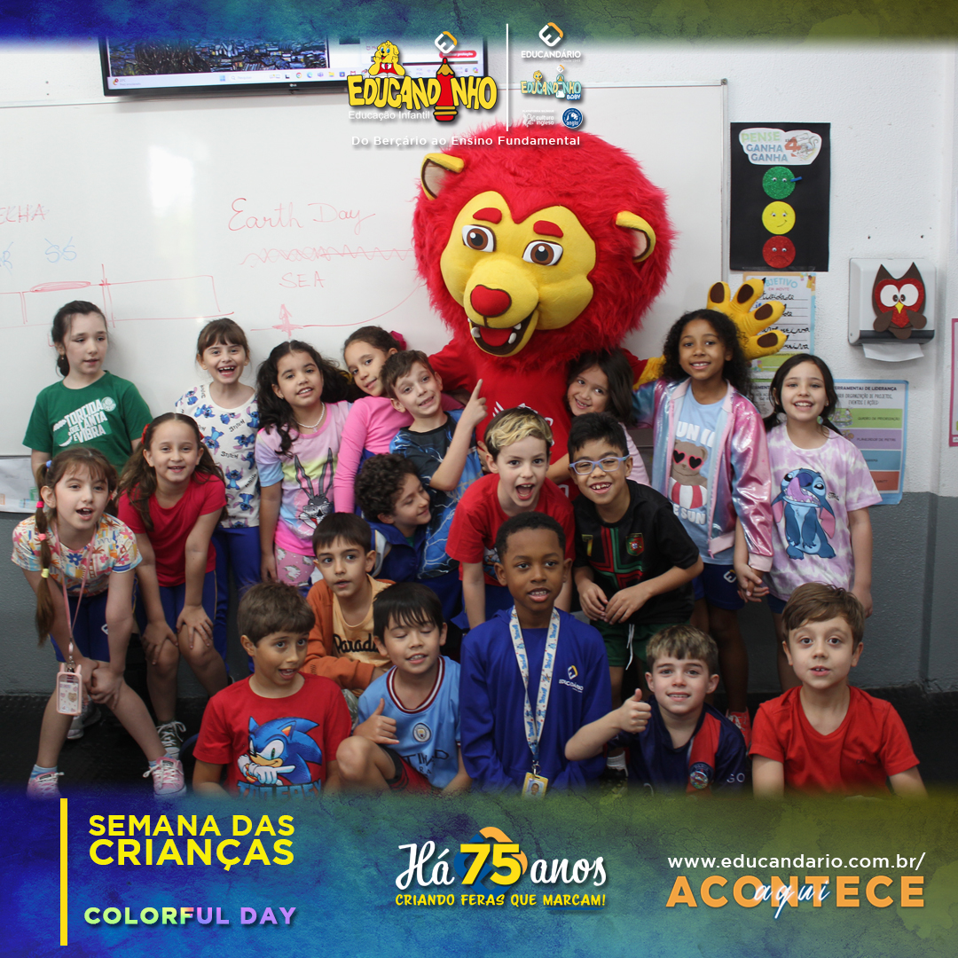 No COLORFUL DAY da Semana das Crianças, as crianças se vestiram com roupas coloridas e participaram de várias atividades recreativas. O dia também contou com uma visita especial: o Lion da Cultura Inglesa, que trouxe ainda mais alegria ao evento.