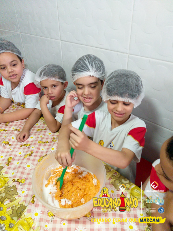 A culinária é uma habilidade essencial para o desenvolvimento da autonomia e da criatividade nas crianças. Nossa turminha do Infantil 4 vivenciou isso ao preparar um delicioso bolo de cenoura!