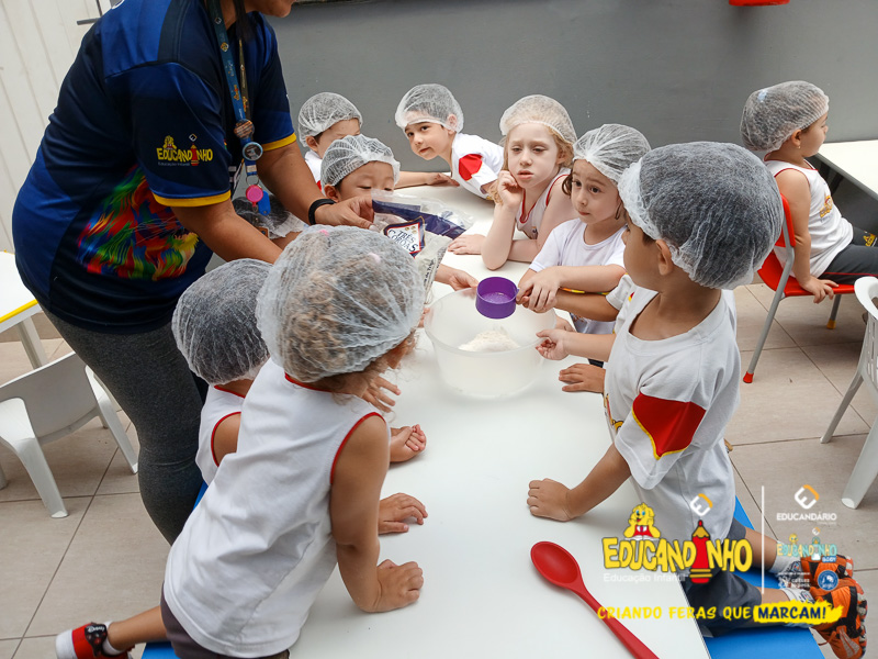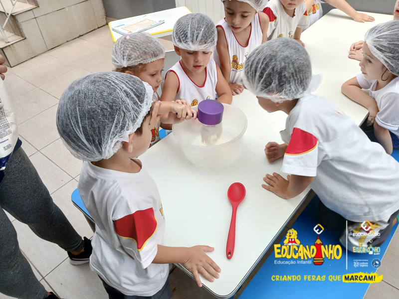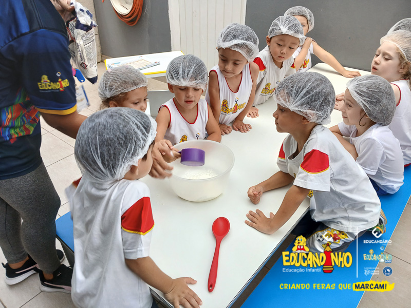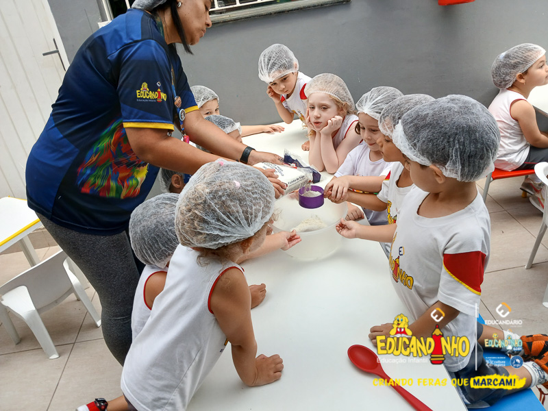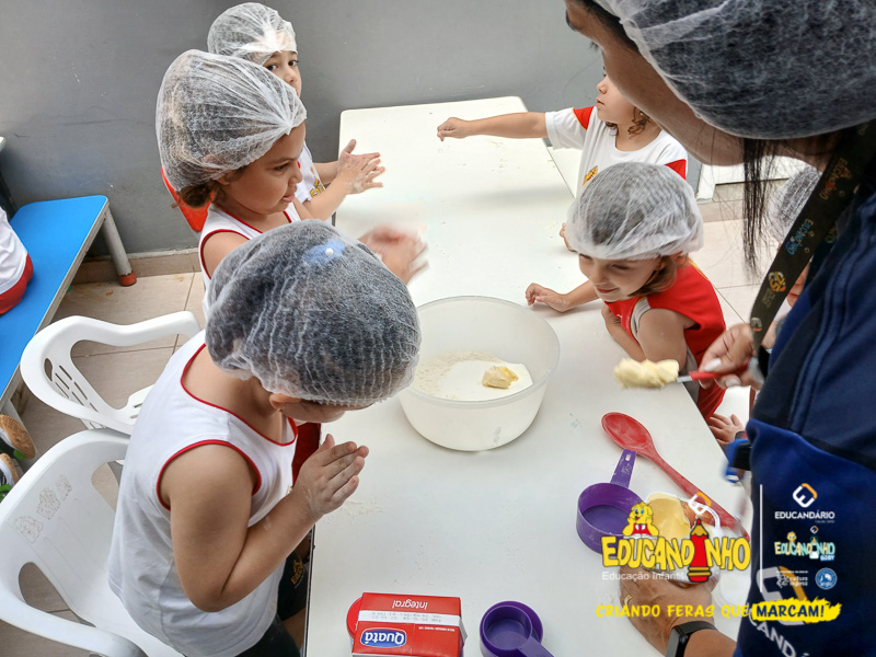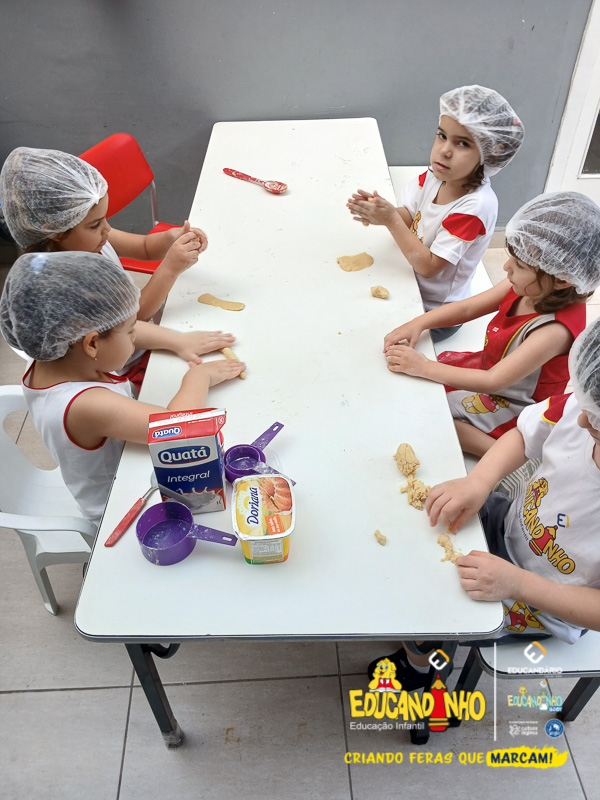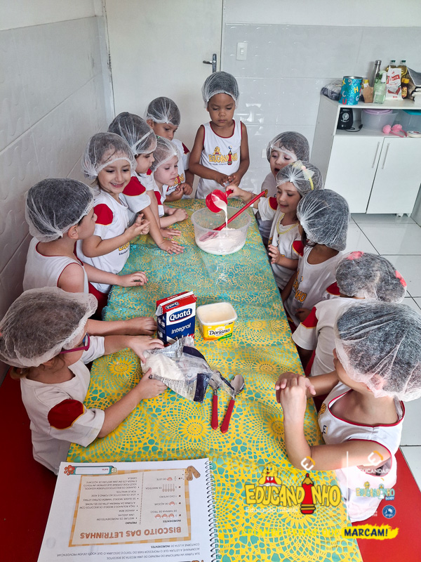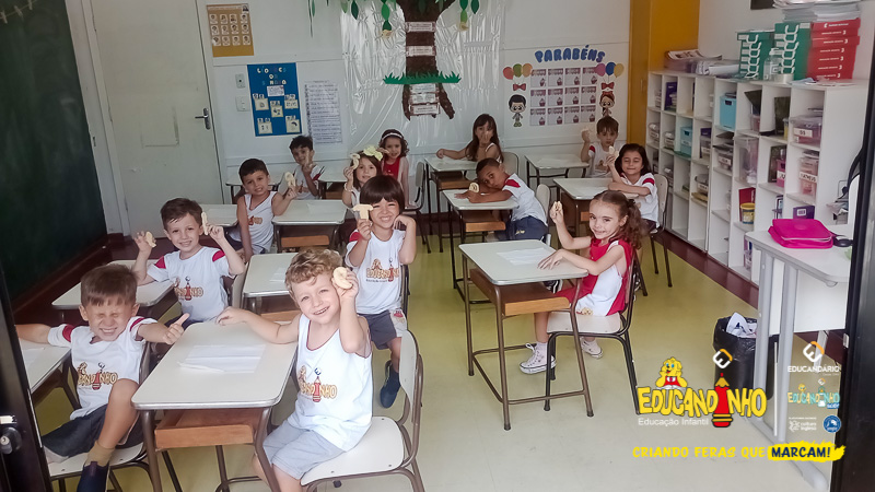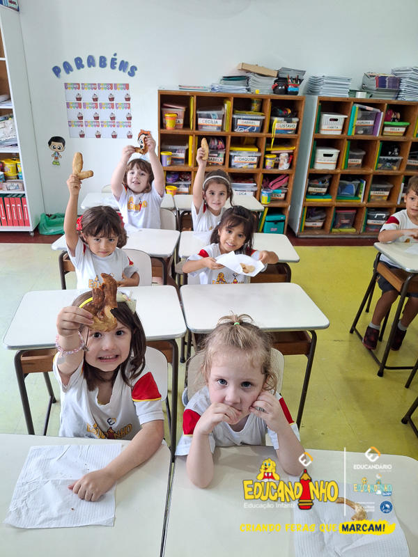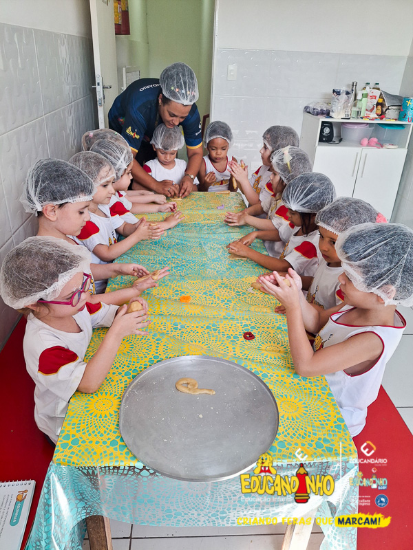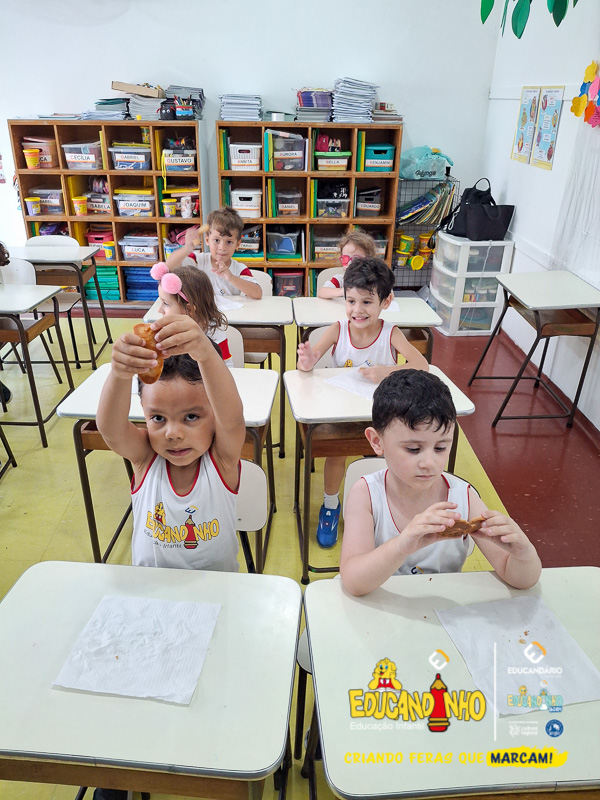 Além de explorarem sabores e texturas, os pequenos brincaram com as palavras, reforçando o reconhecimento das letras de forma divertida e deliciosa!