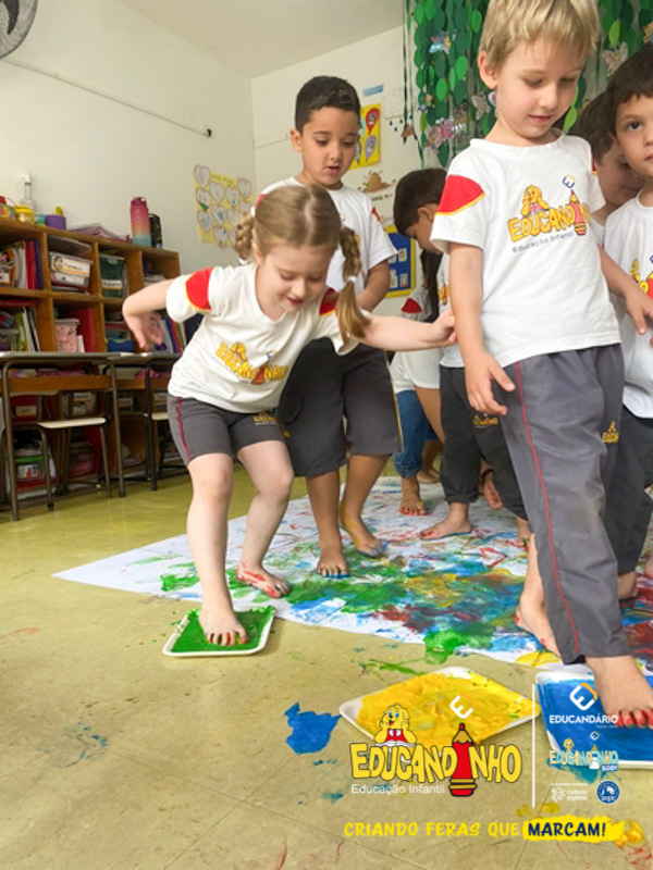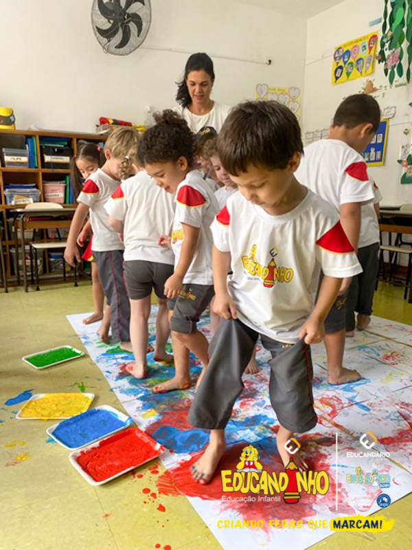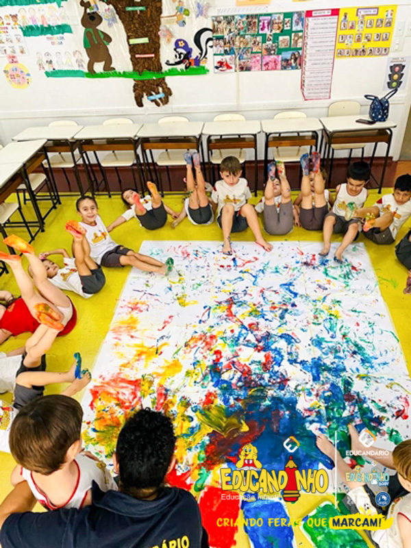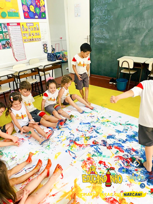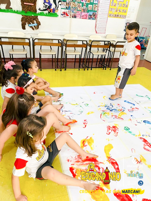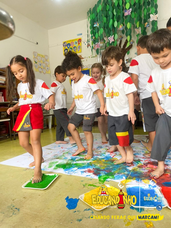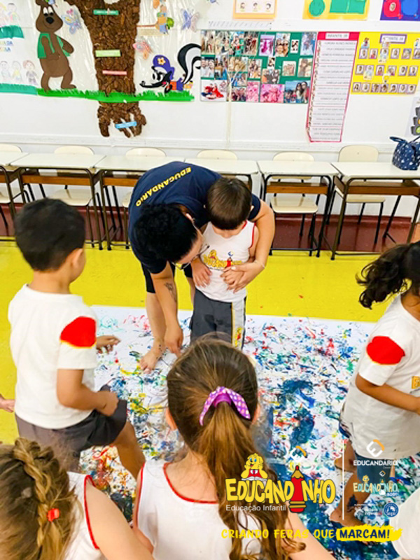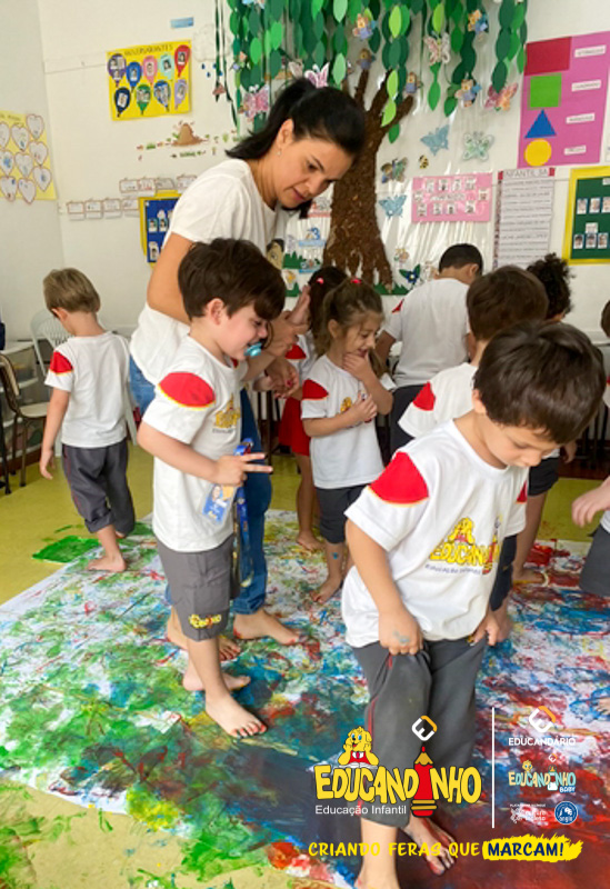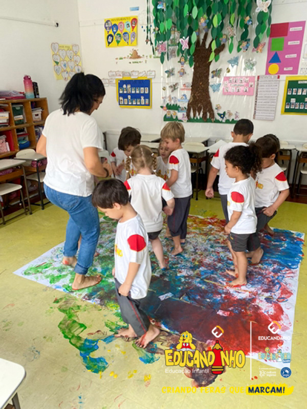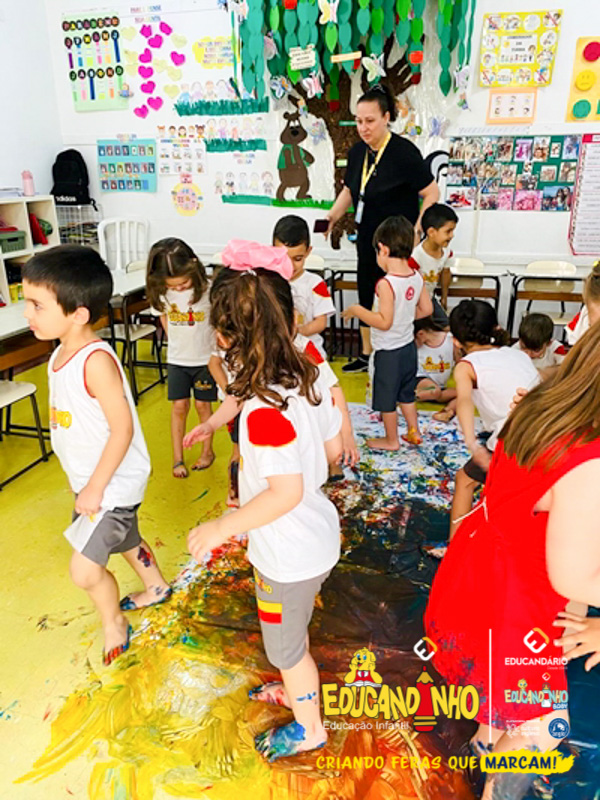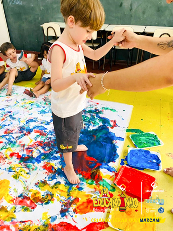 No Infantil 3, a criatividade não tem limites! Nossos pequenos artistas dançaram ao som da música das cores, espalhando tinta e dando vida a obras de arte únicas. Esta atividade estimulou a expressão artística e a coordenação motora, resultando em momentos de pura diversão e aprendizado.