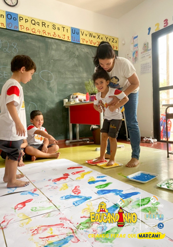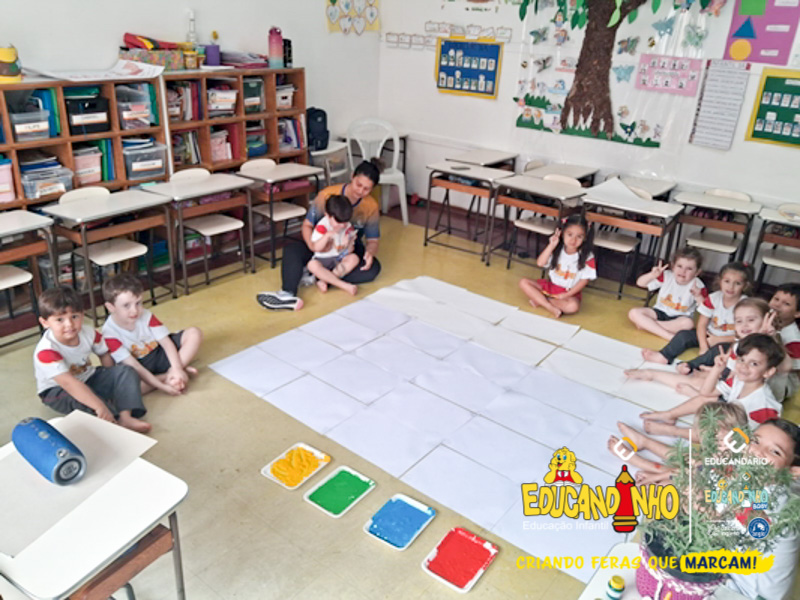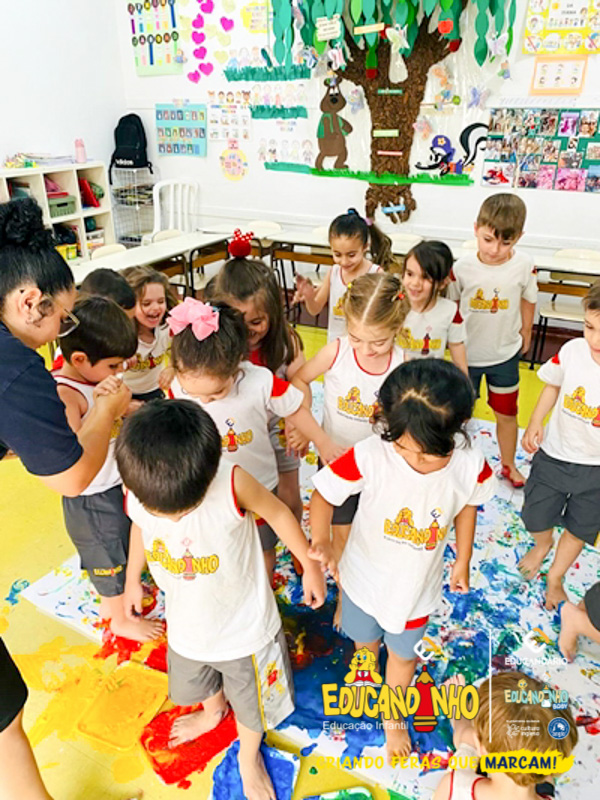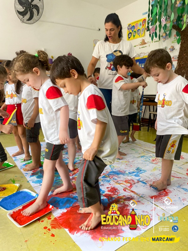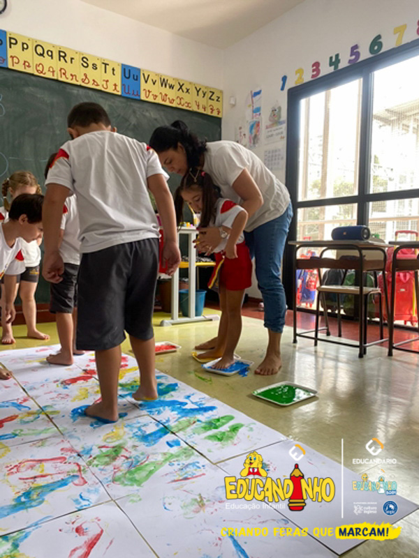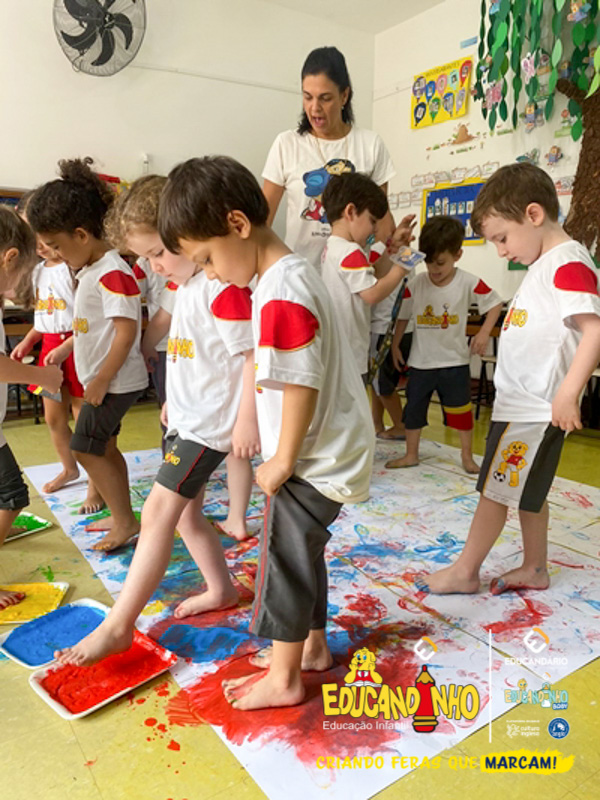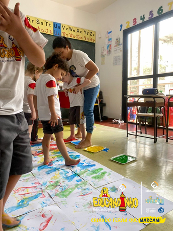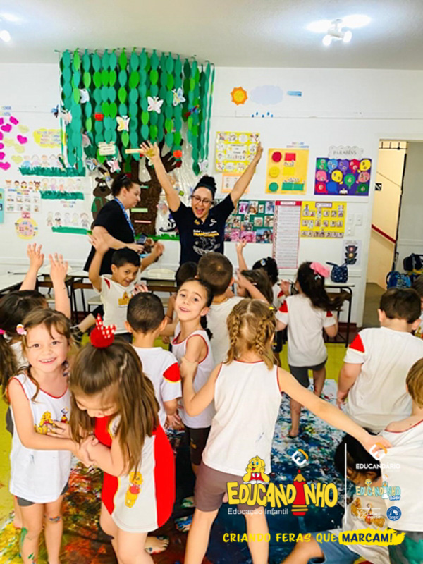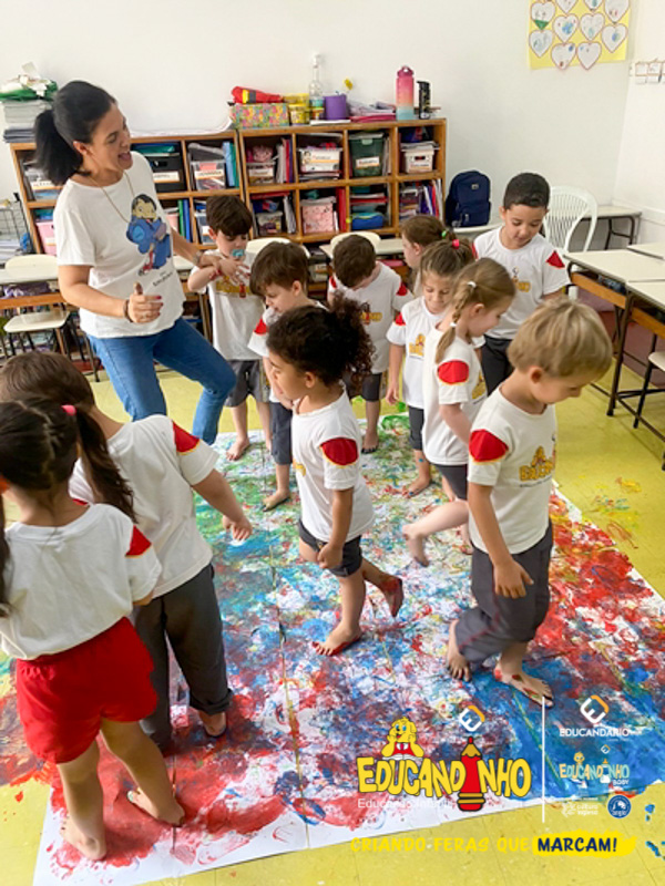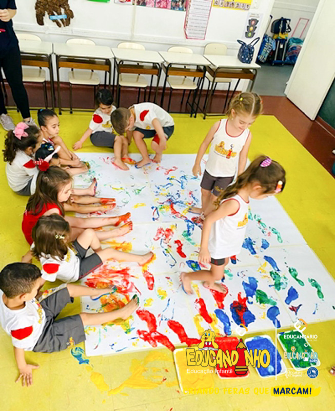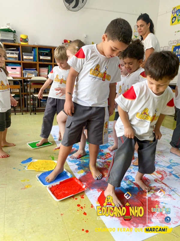 No Infantil 3, a criatividade não tem limites! Nossos pequenos artistas dançaram ao som da música das cores, espalhando tinta e dando vida a obras de arte únicas. Esta atividade estimulou a expressão artística e a coordenação motora, resultando em momentos de pura diversão e aprendizado.