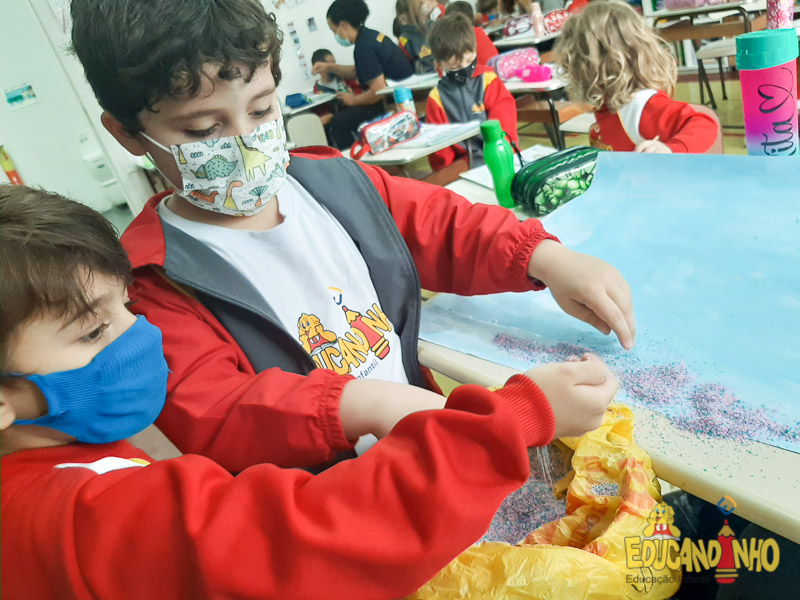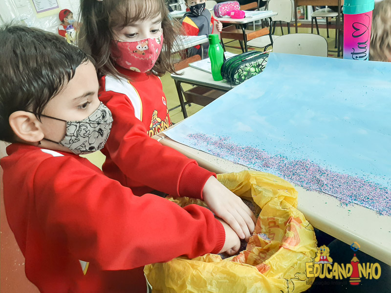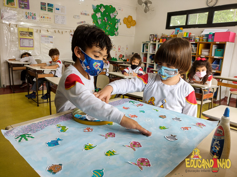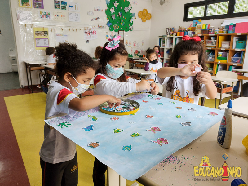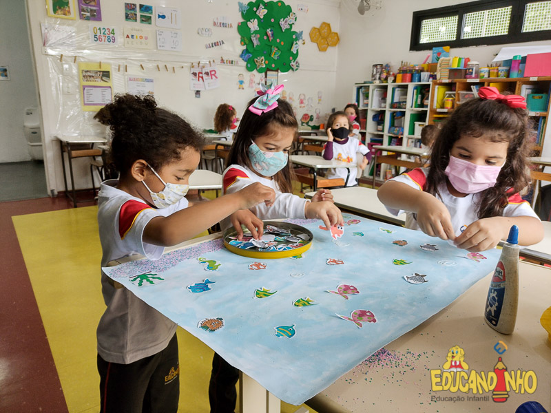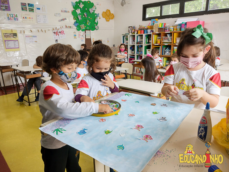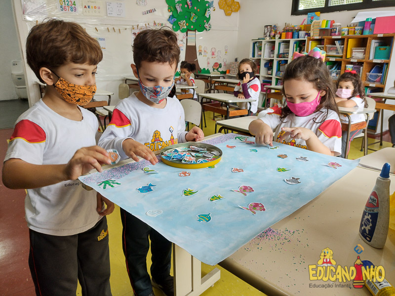 Ainda no tema – fundo do mar do módulo 1 da apostila 4 Anglo, a turminha do Infantil 3 fizeram um cartaz de aquário, colocaram areia, algas e peixinhos. (Agradecimentos: Prô Marília e Rita). Confira como foi essa atividade: