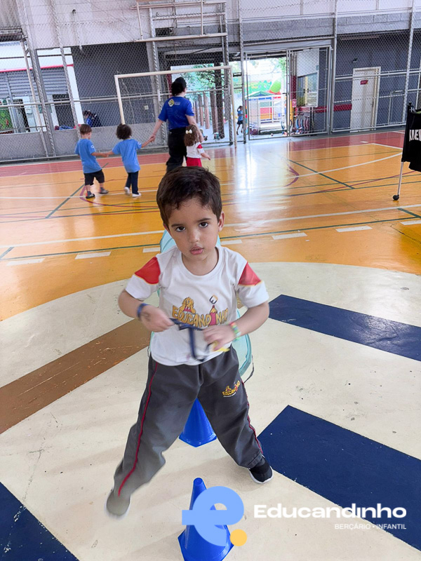 O Infantil 4 fez uma brincadeira cheia de energia e cooperação!As equipes precisavam encontrar os nomes na caixa e chamar os amigos para continuar. Quem terminava primeiro, vencia o desafio! Além da diversão, a atividade ajudou os pequenos a reconhecer seus nomes, estimulou atenção e memória.