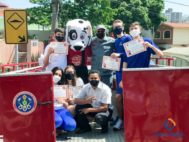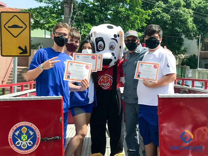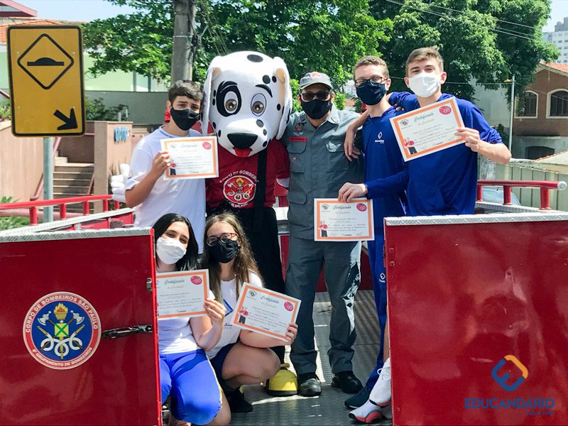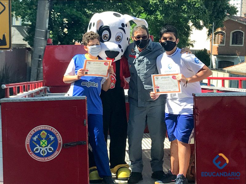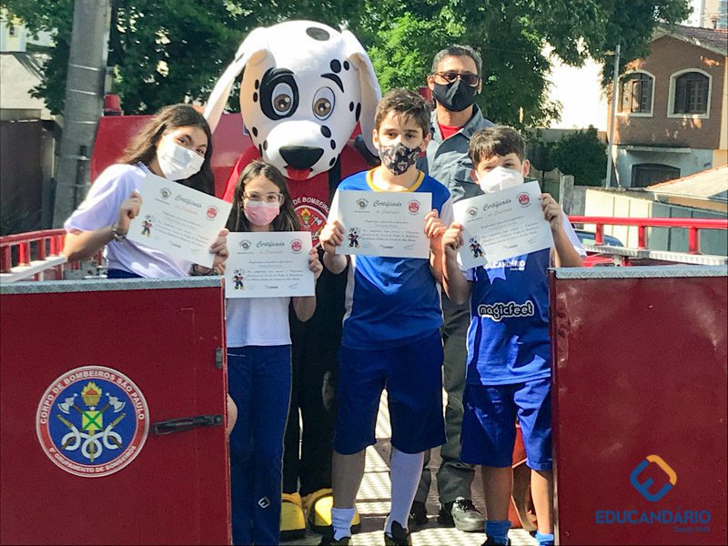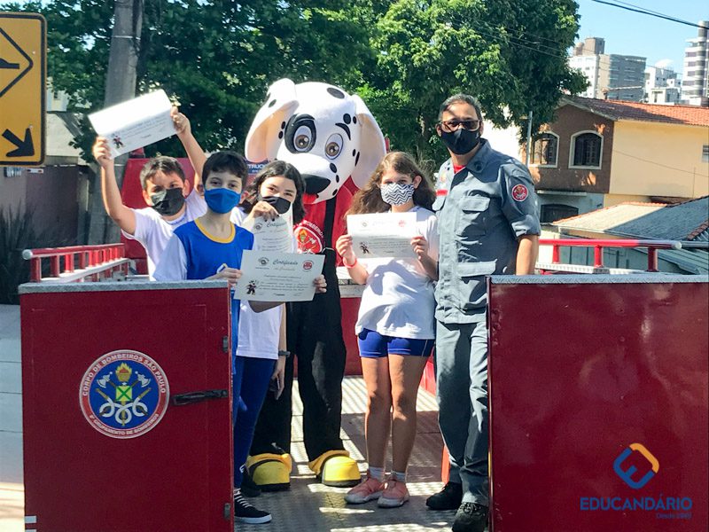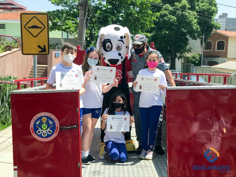 Contamos também com a presença da nossa Diretora Pedagógica – Denise Bernardo, Rosangela Cattaruzzi (Vice-Diretora Pedagógica), Nathalie Michelini (Coordenadora Pedagógica), as Professoras: Tatiane, Luciene, Maeli, Ingrid, a auxiliar de classe: Letícia Souza e os professores: Ednaldo e Oscar. Um dia muito lindo e alegre com o – Faísca (Mascote do Corpo de Bombeiros da Polícia Militar do Estado de São Paulo.)