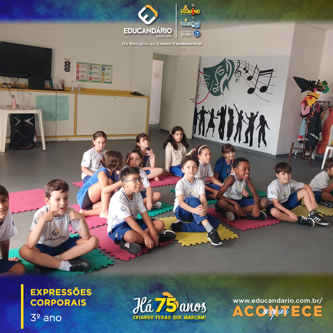 Durante as aulas do 3ºA, os alunos foram incentivados a explorar diferentes movimentos, posturas e gestos.