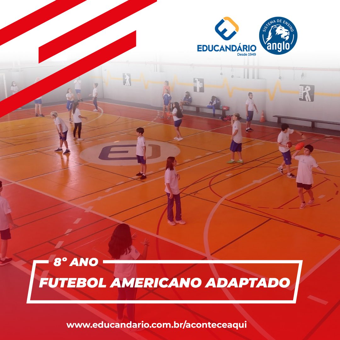 Na aula de Educação Física, os alunos do 8º ano realizaram em grupos, corrida com e sem obstáculos, lançamentos e recepção de bola além do chute. Foi desenvolvido o jogo do Futebol Americano com regras adaptadas. O objetivo dessa atividade foi trazer aos alunos uma vivência de uma modalidade esportiva pouca vista em nosso país e a vivencia na modalidade. (Colaboração: Prô Danilo).