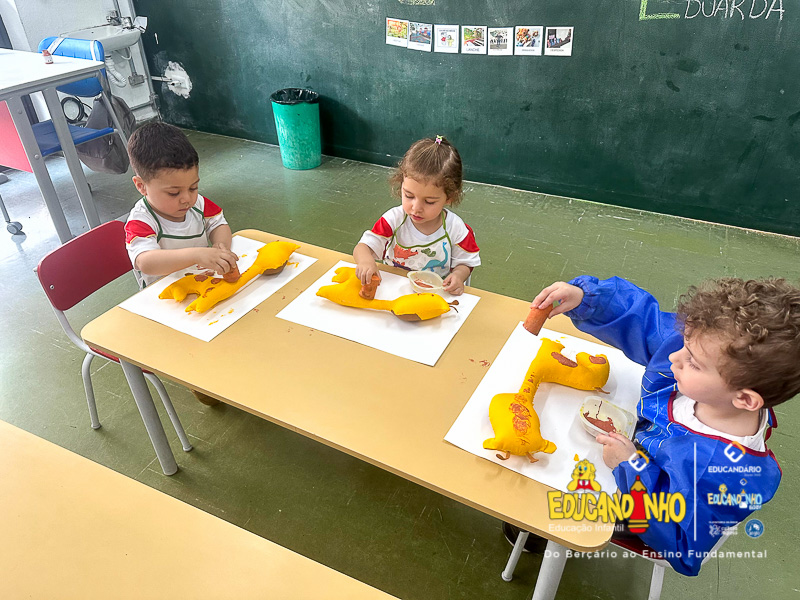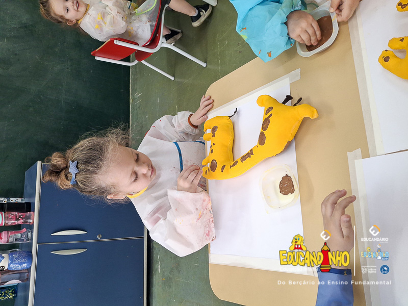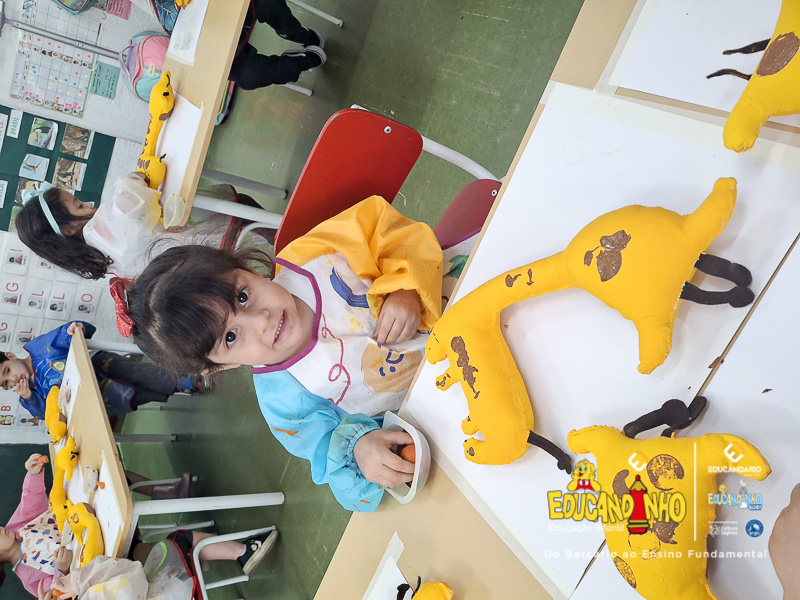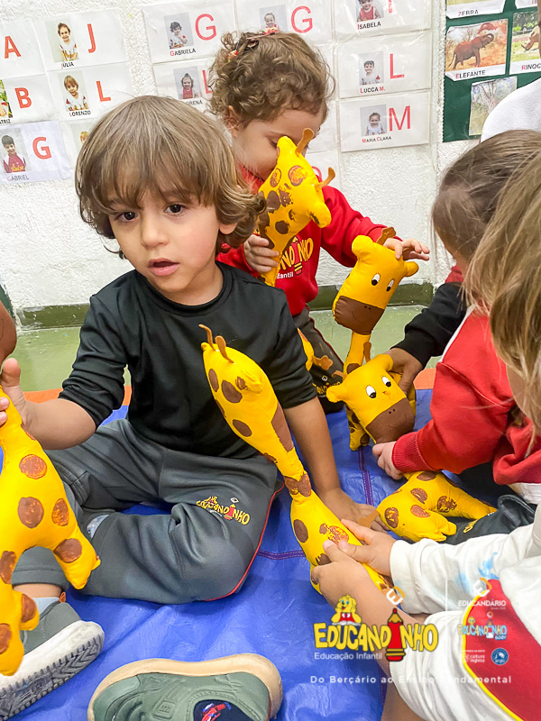 Entre tantas descobertas, uma em especial conquistou seus corações: a girafa! Com seu pescoço longo e olhar curioso, ela se tornou símbolo dessa experiência encantadora. Como lembrança dessa aventura, cada criança trouxe consigo não apenas sorrisos, mas também uma girafa — um pedacinho da África para guardar com carinho.