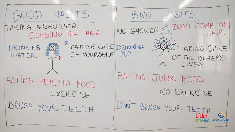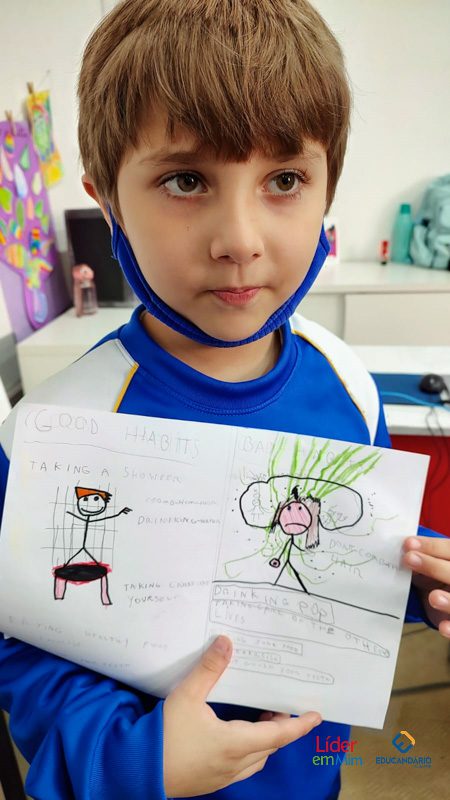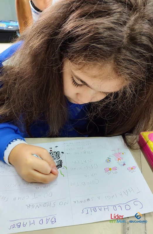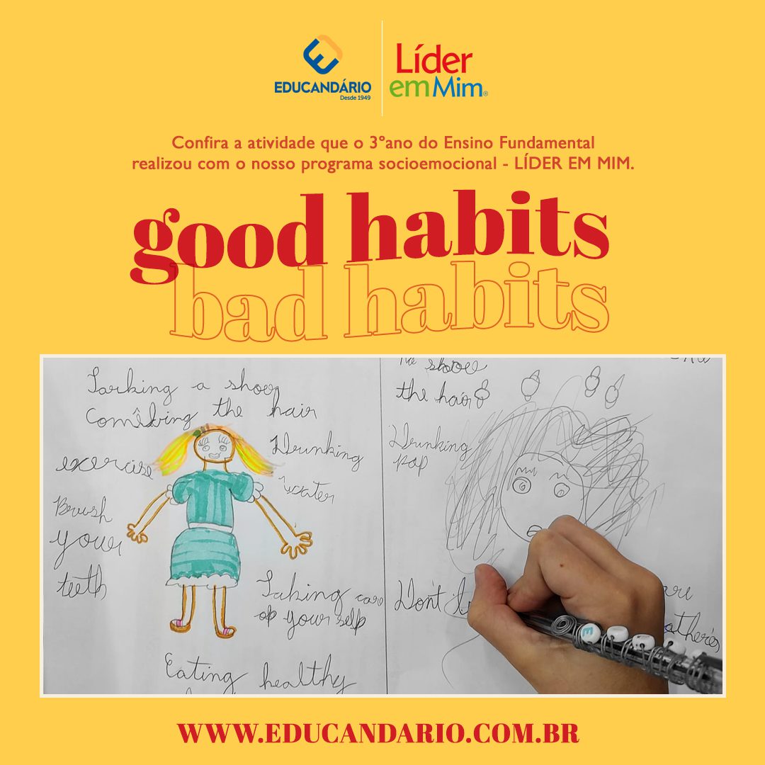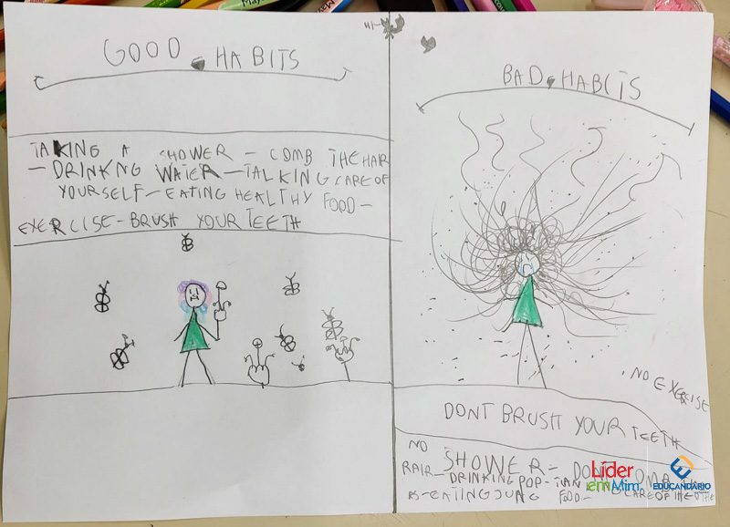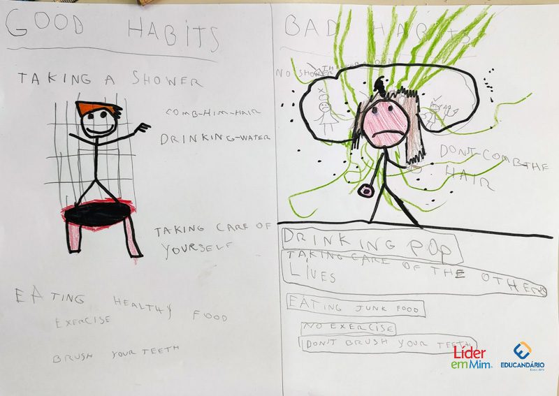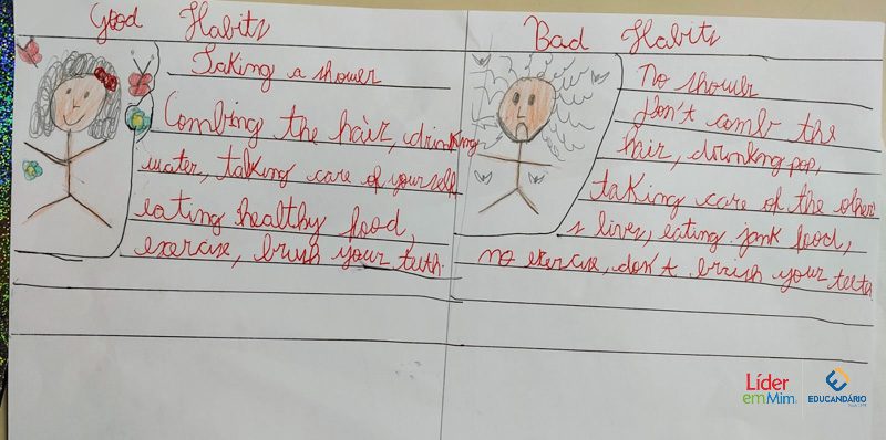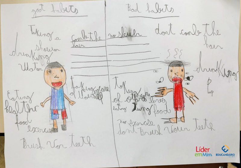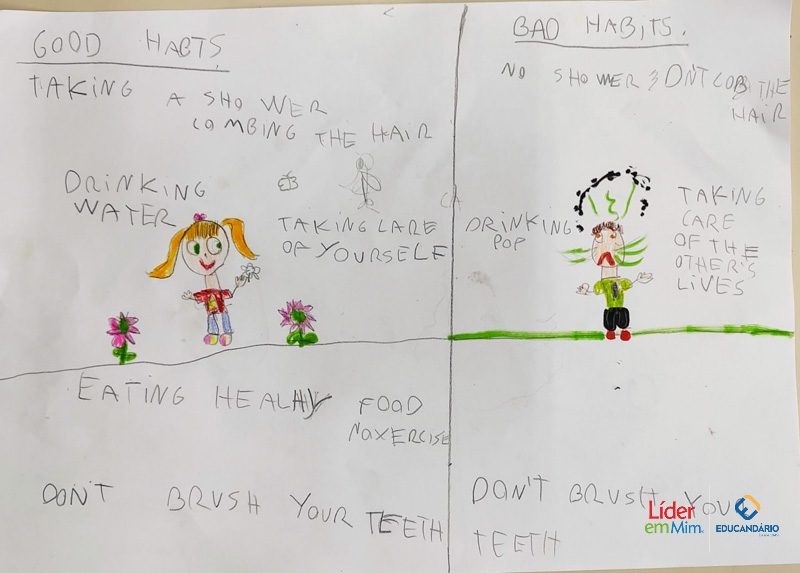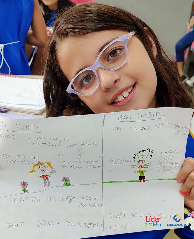 Saber, identificar e escrever quais são os bons e maus hábitos. Confira a atividade realizada com o 3º ano, na aula de Inglês, com o nosso programa socioemocional – LÍDER EM MIM.