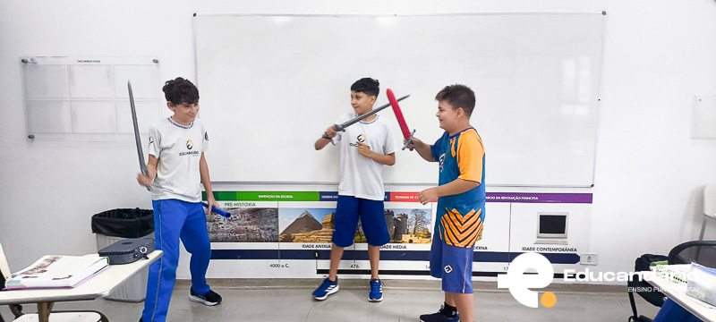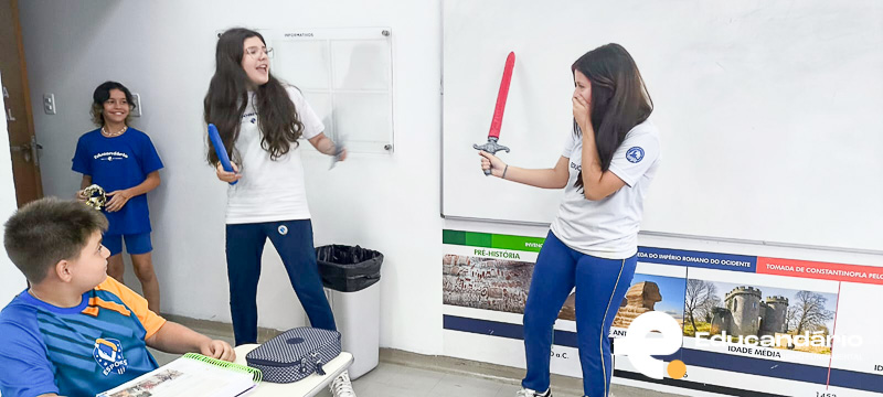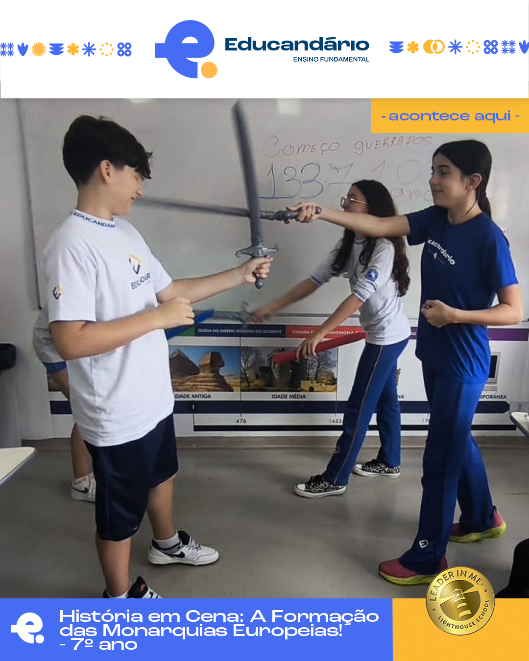 Nossos alunos do 7º ano transformaram a sala de aula em um verdadeiro palco da História! Em grupos, eles representaram de forma lúdica e criativa a formação das monarquias da França, Inglaterra, Portugal e Espanha.