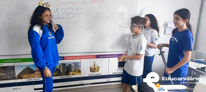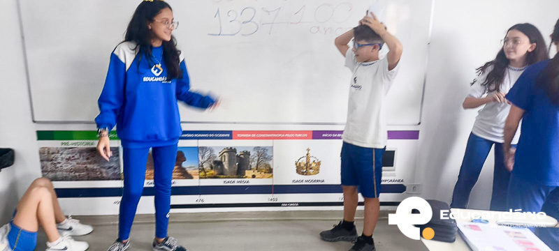 Nossos alunos do 8º ano transformaram a sala de aula em um verdadeiro palco da História! Em grupos, eles representaram de forma lúdica e criativa a formação das monarquias da França, Inglaterra, Portugal e Espanha.