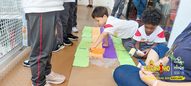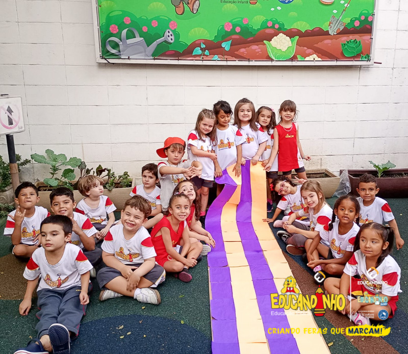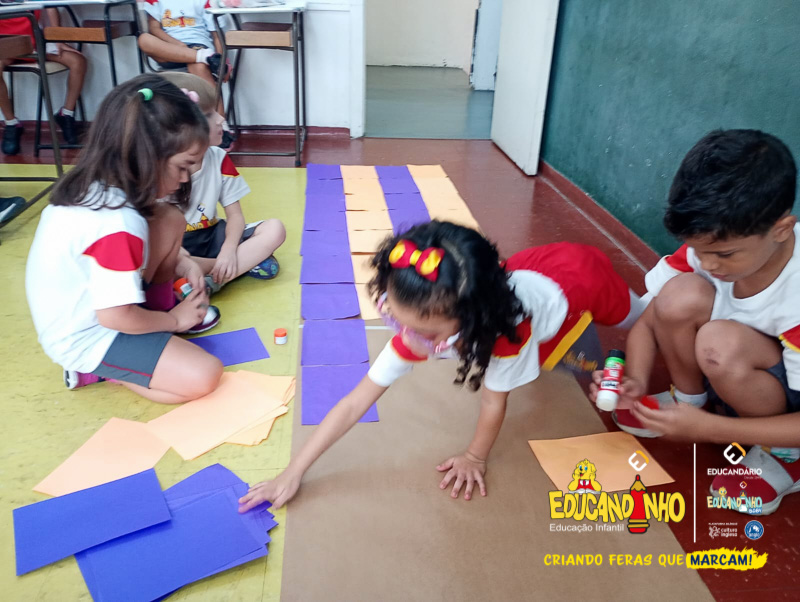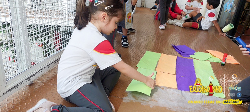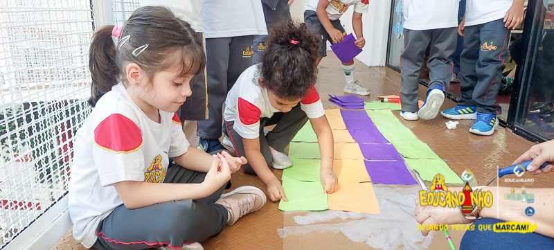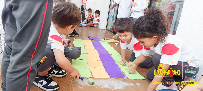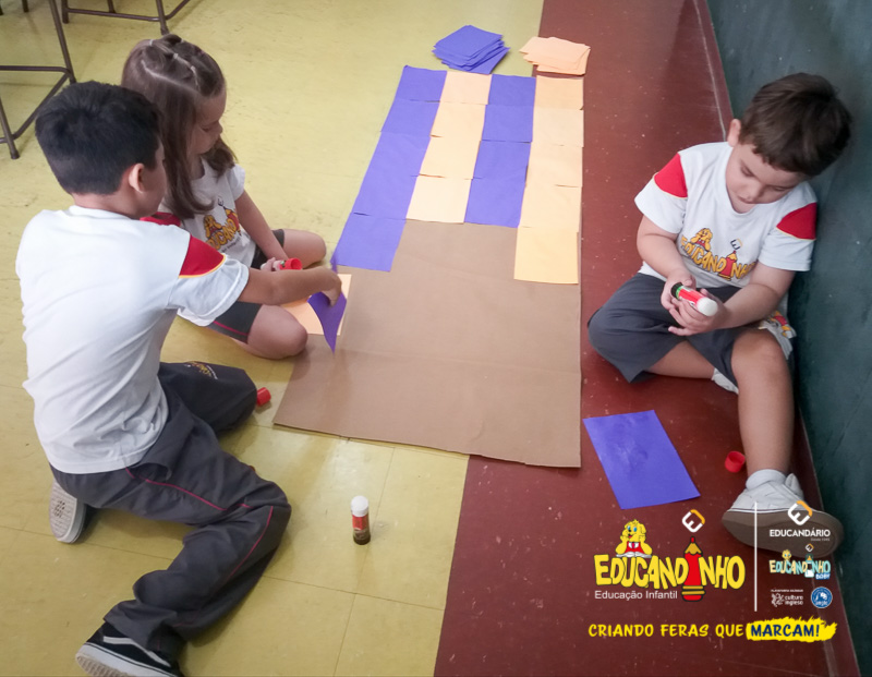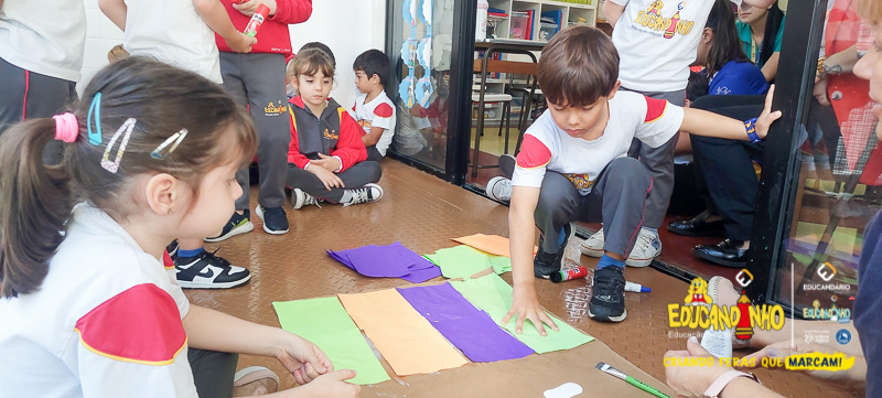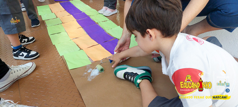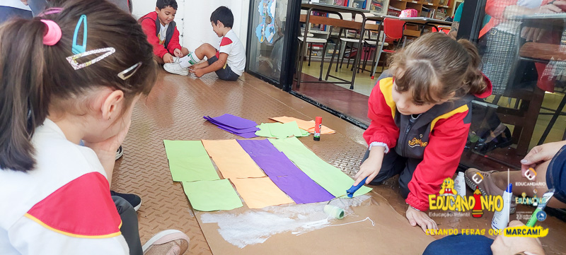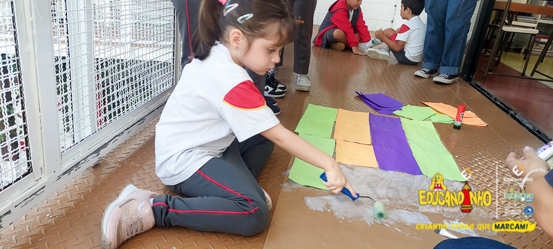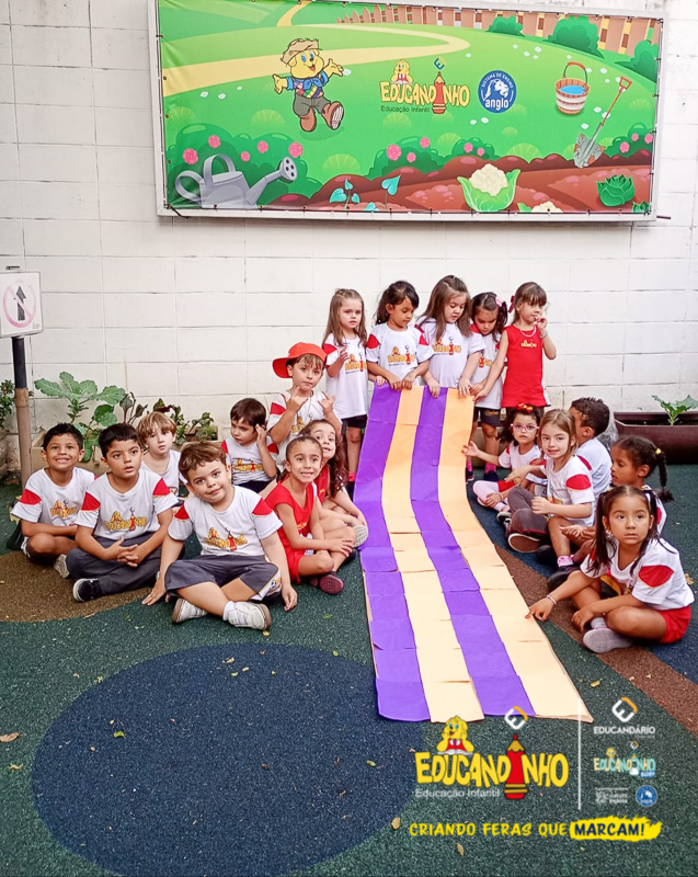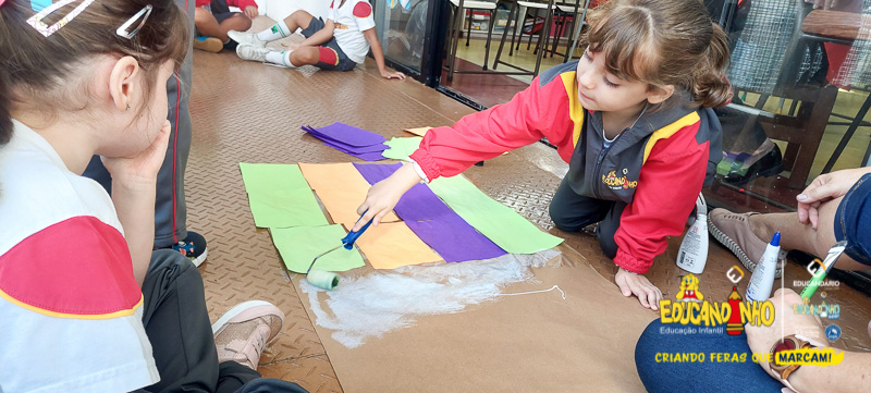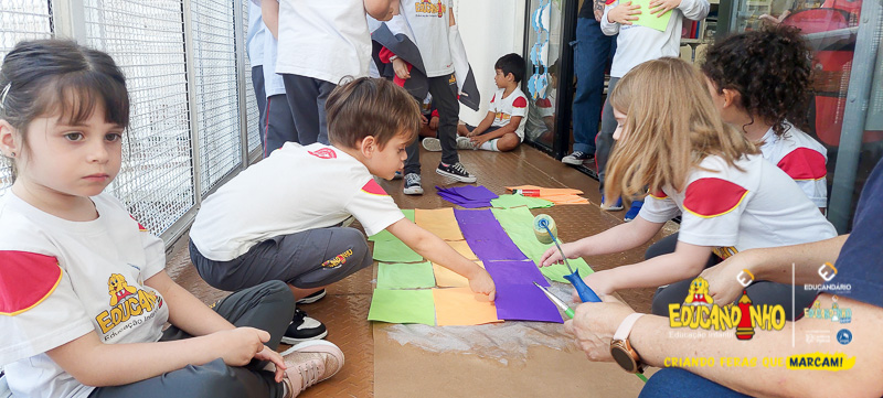 Inspirados por essa canção, os alunos do Infantil 4, criaram e personalizaram, usando a sequência das cores, uma rua ladrilhada da classe. Além de estimular a coordenação motora fina e o trabalho em equipe, as crianças tiveram a oportunidade de valorizar as tradições culturais.