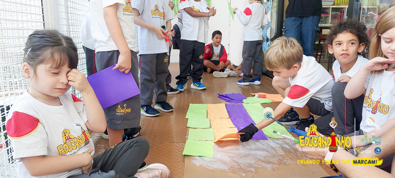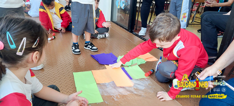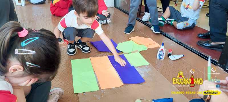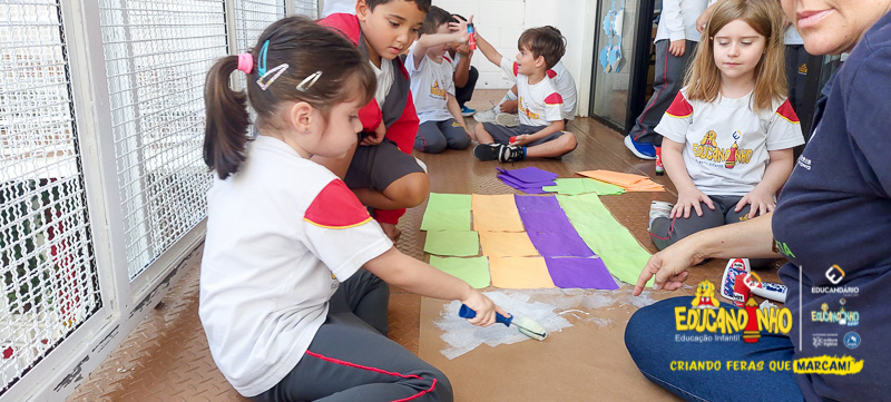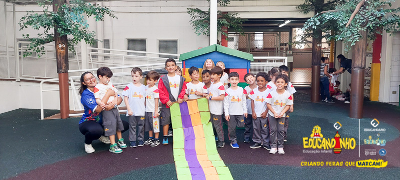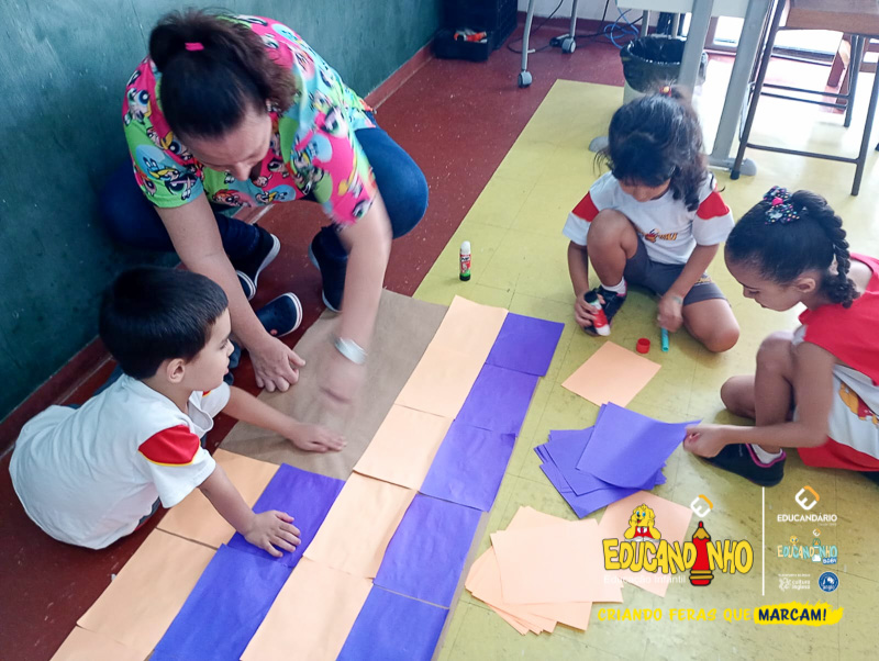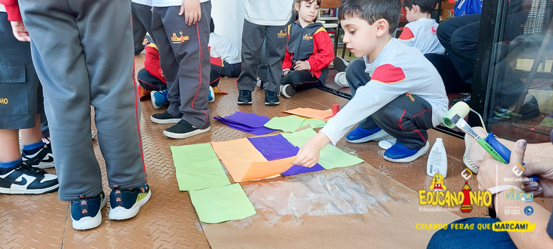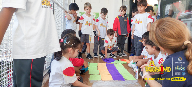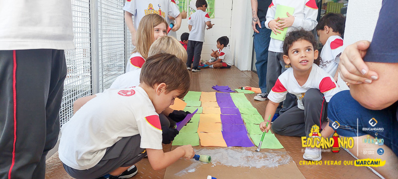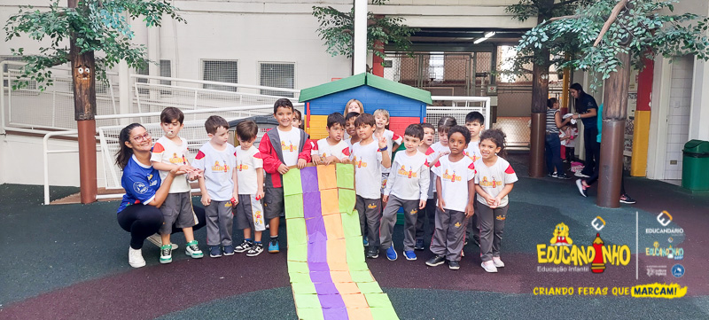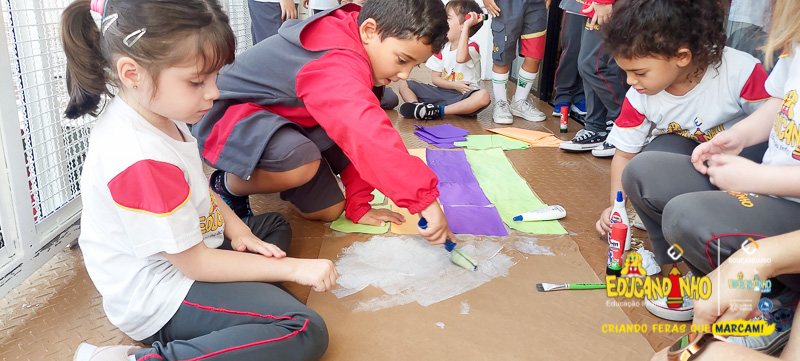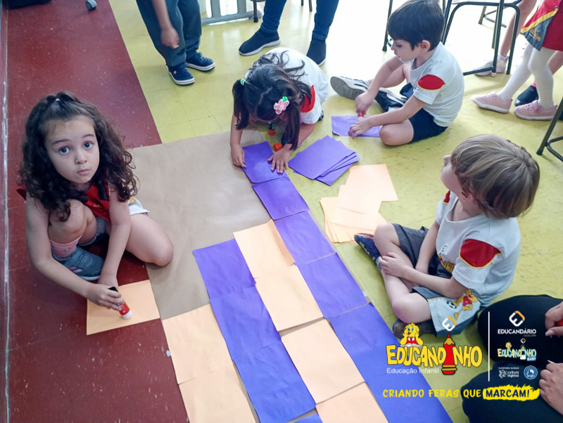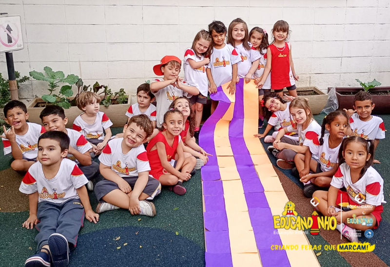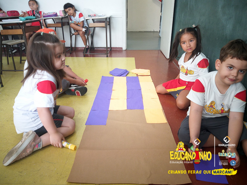 Inspirados por essa canção, os alunos do Infantil 4, criaram e personalizaram, usando a sequência das cores, uma rua ladrilhada da classe. Além de estimular a coordenação motora fina e o trabalho em equipe, as crianças tiveram a oportunidade de valorizar as tradições culturais.