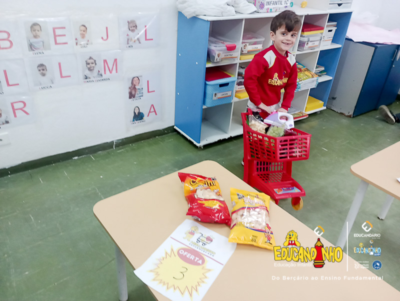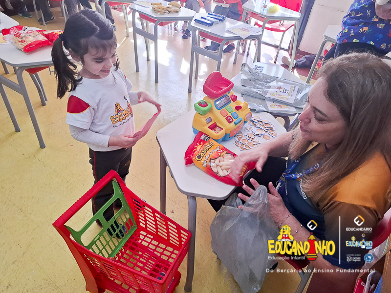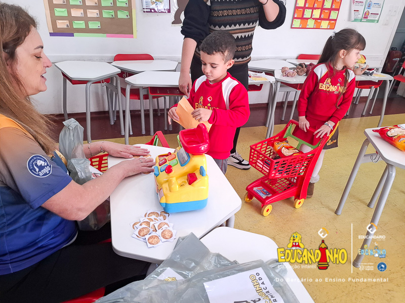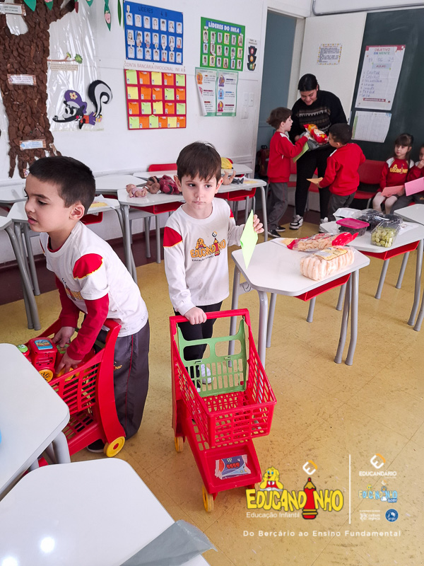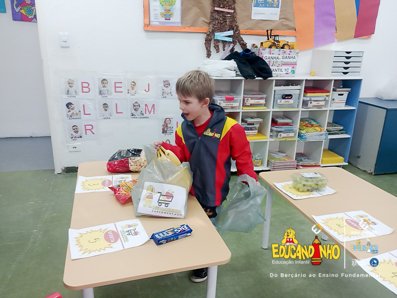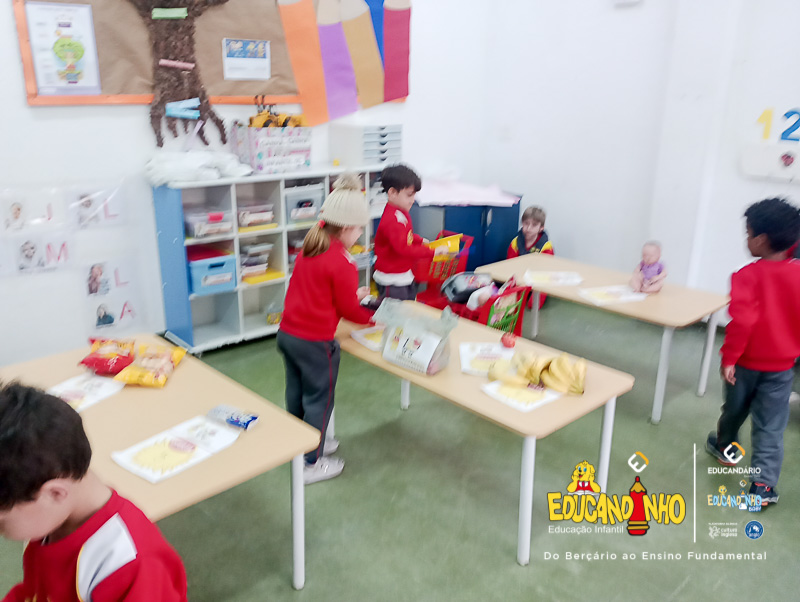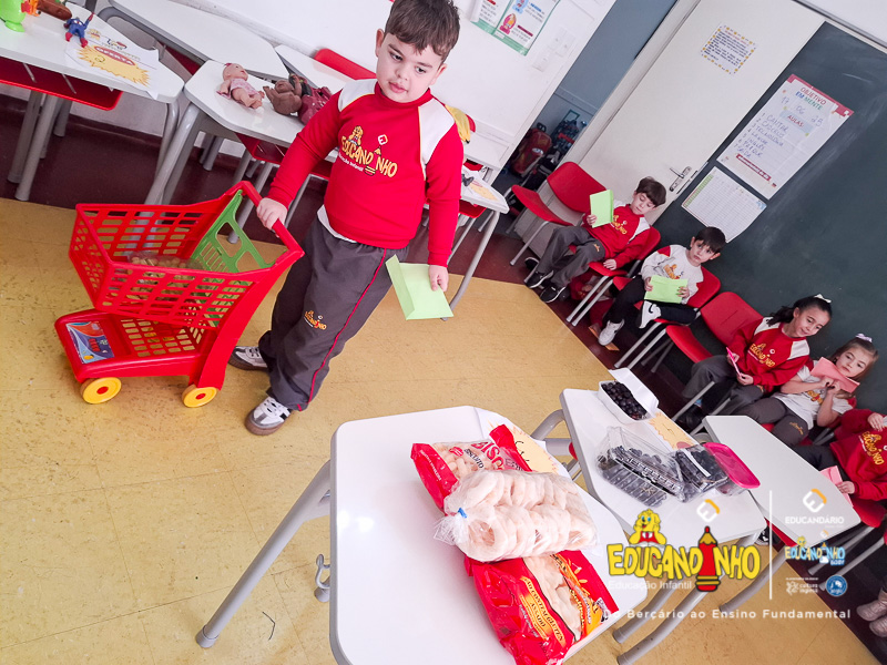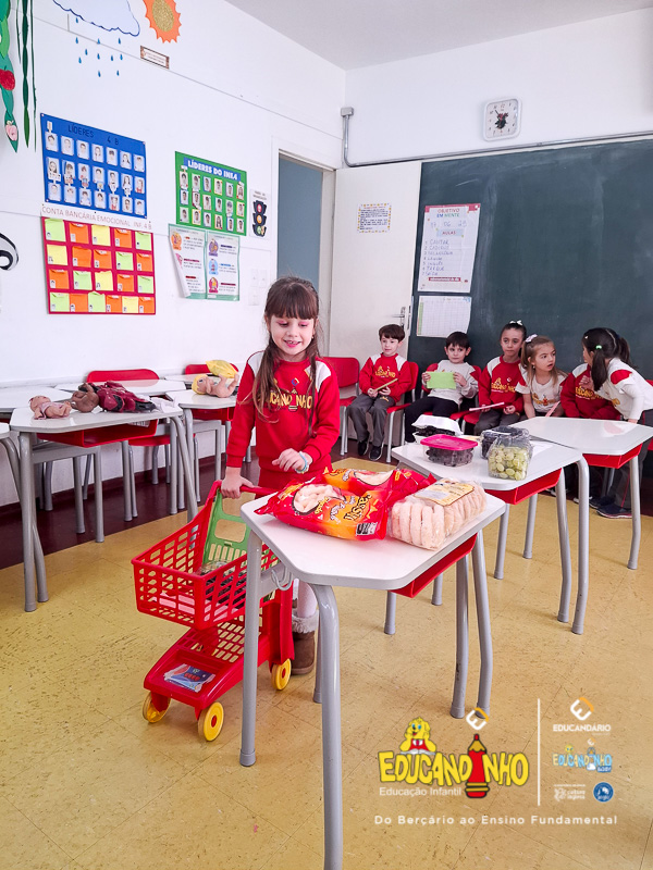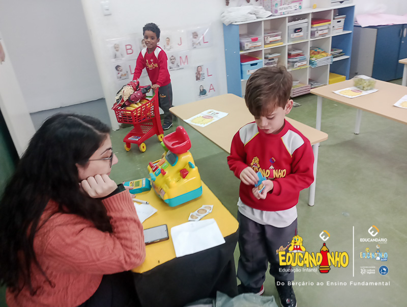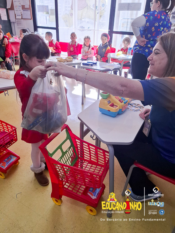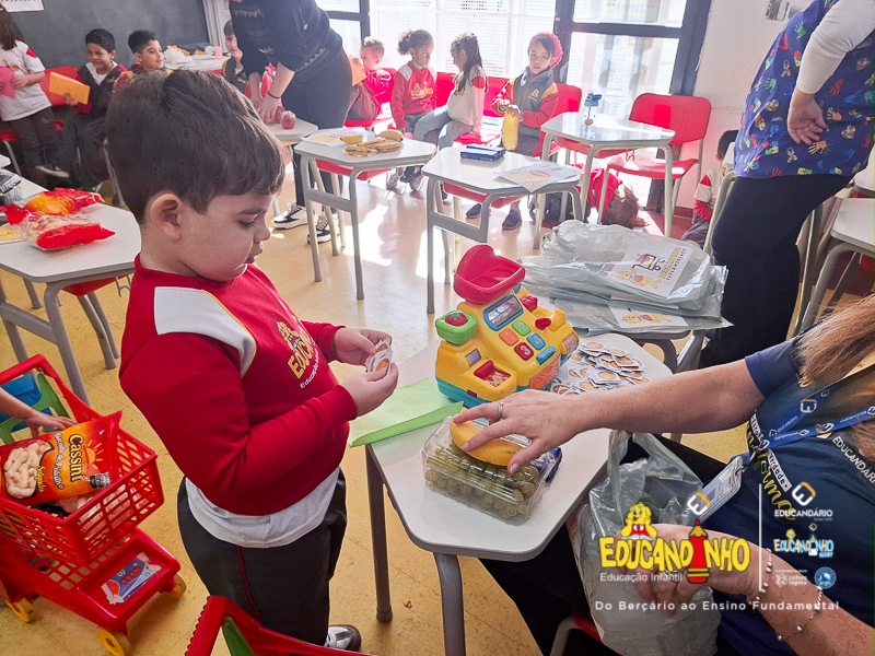 As crianças do Infantil 4 participaram de uma divertida e educativa brincadeira de “mercadinho”. A sala se transformou em um verdadeiro mercado.