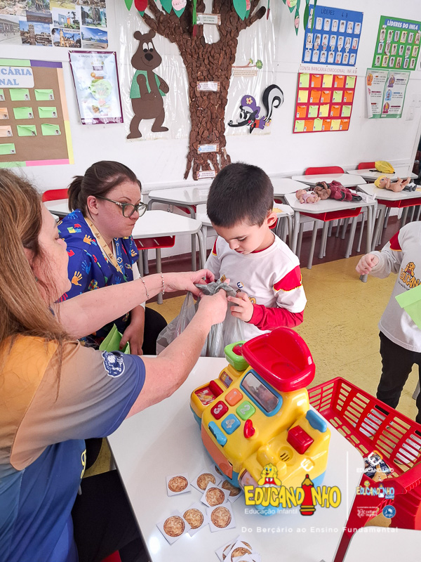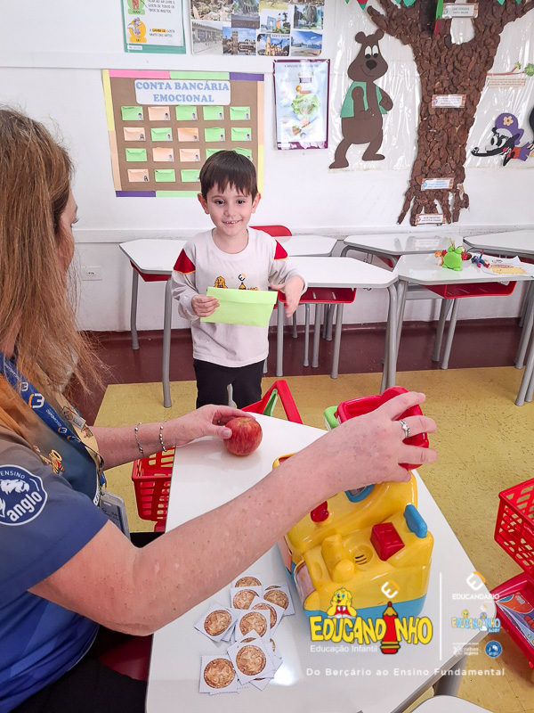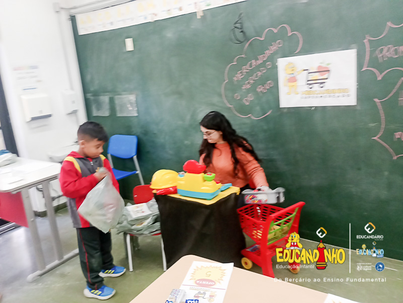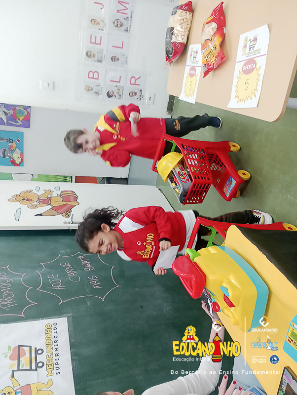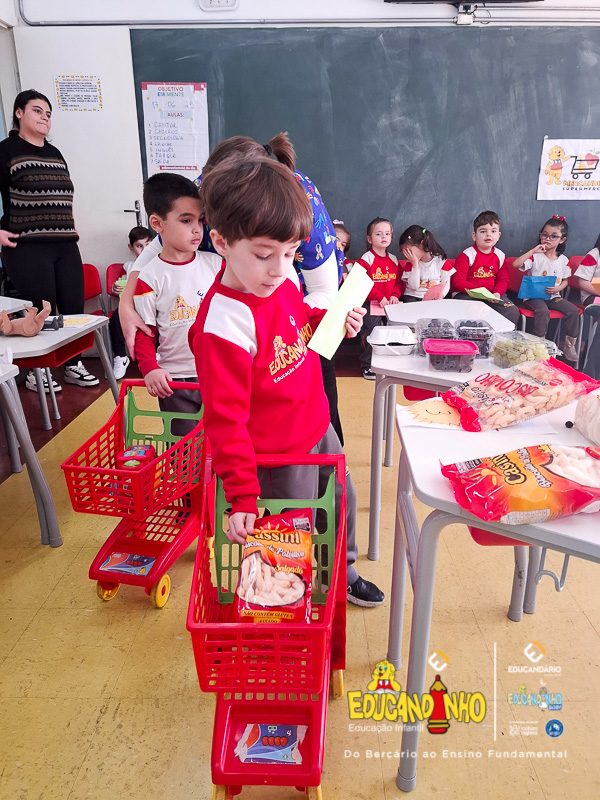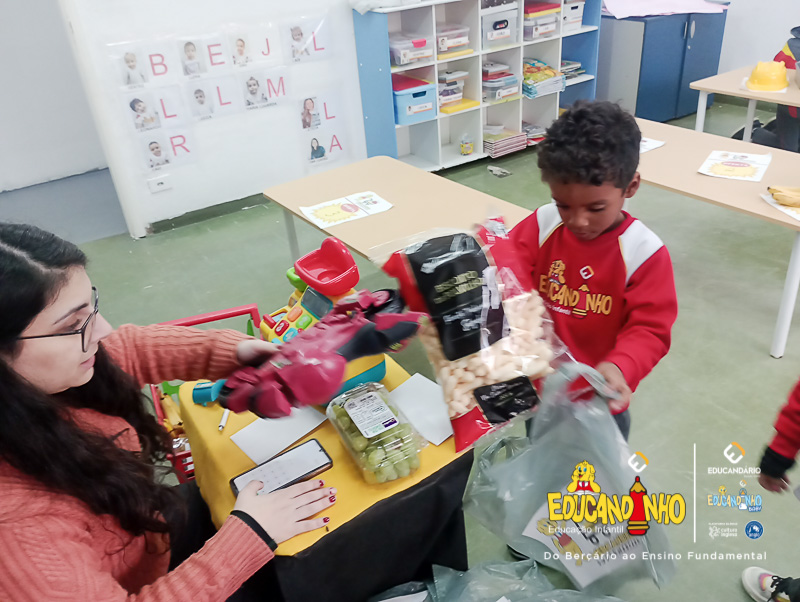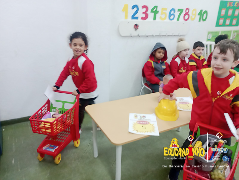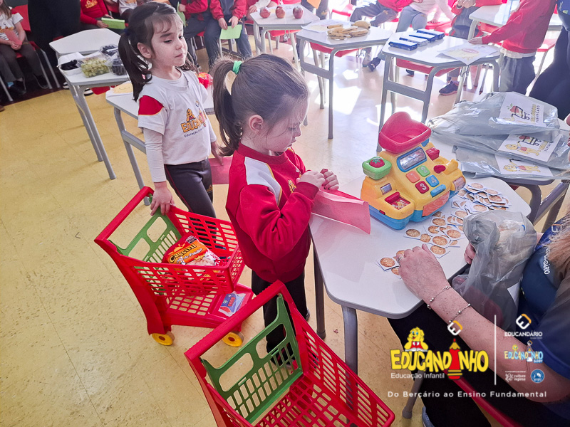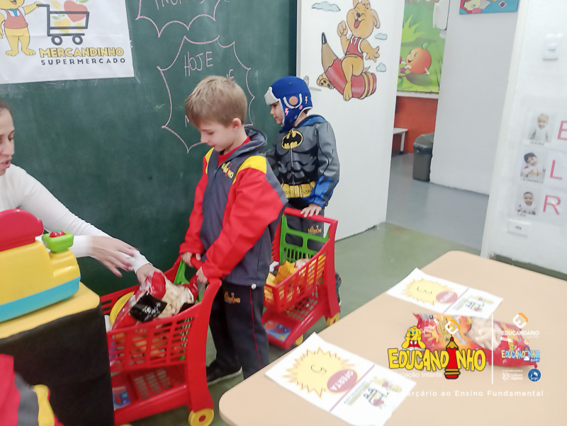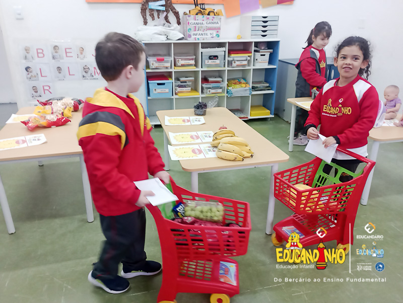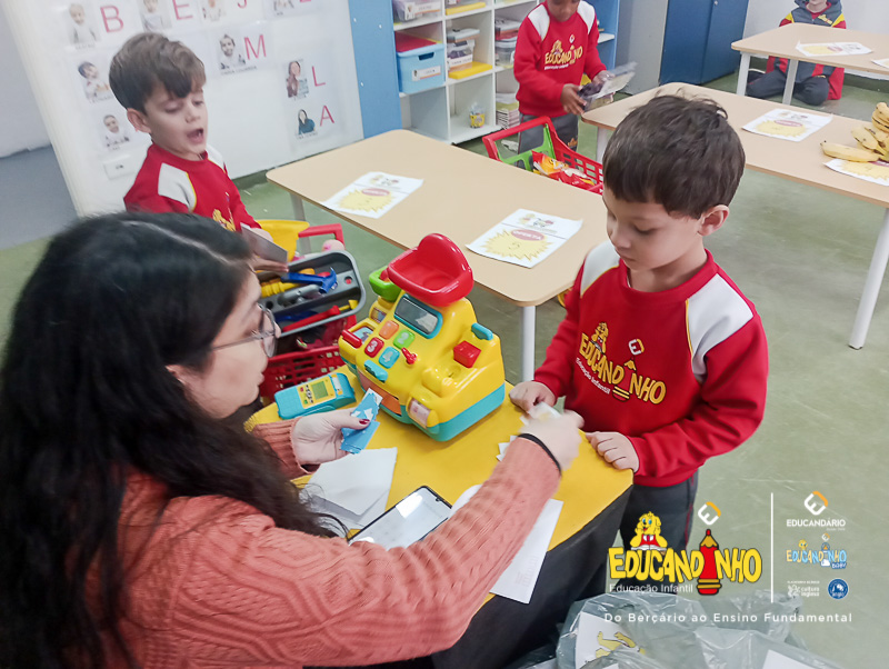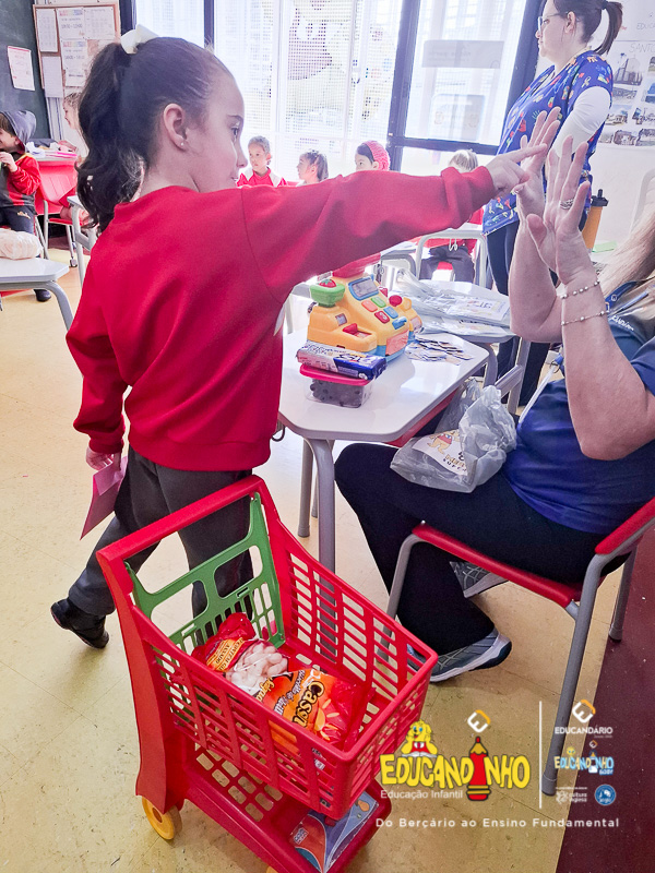 As crianças do Infantil 4 participaram de uma divertida e educativa brincadeira de “mercadinho”. A sala se transformou em um verdadeiro mercado.