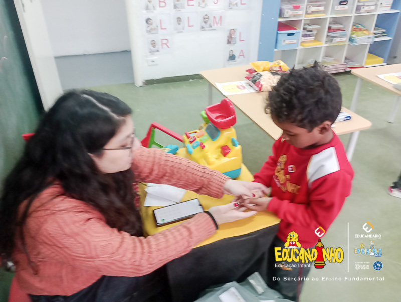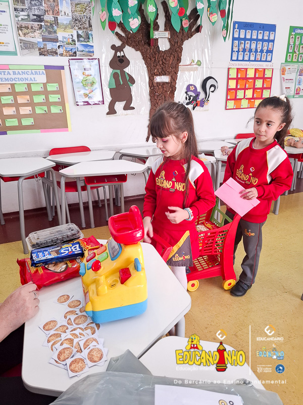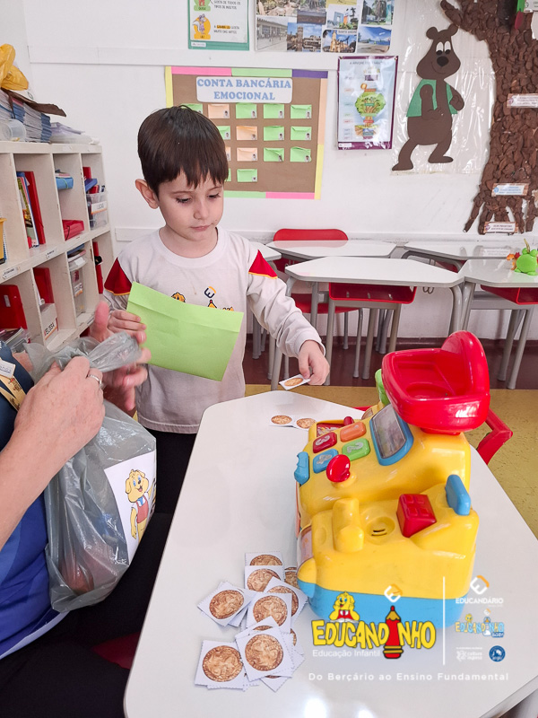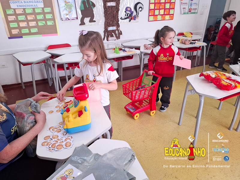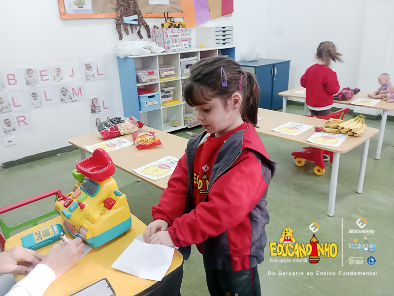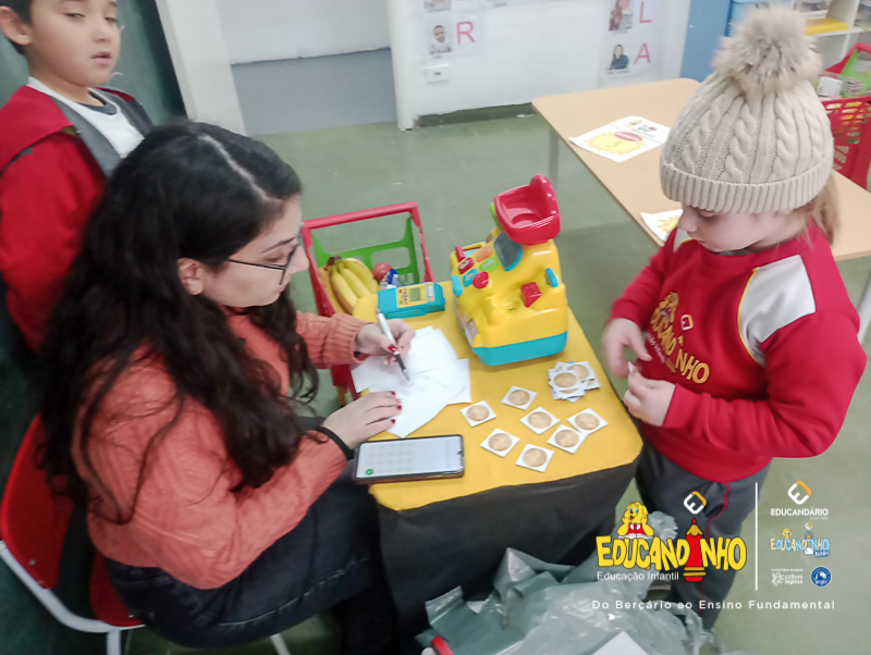 Durante a brincadeira, os pequenos colocaram em prática noções de economia, aprendendo a fazer escolhas, conceitos de adição e subtração.